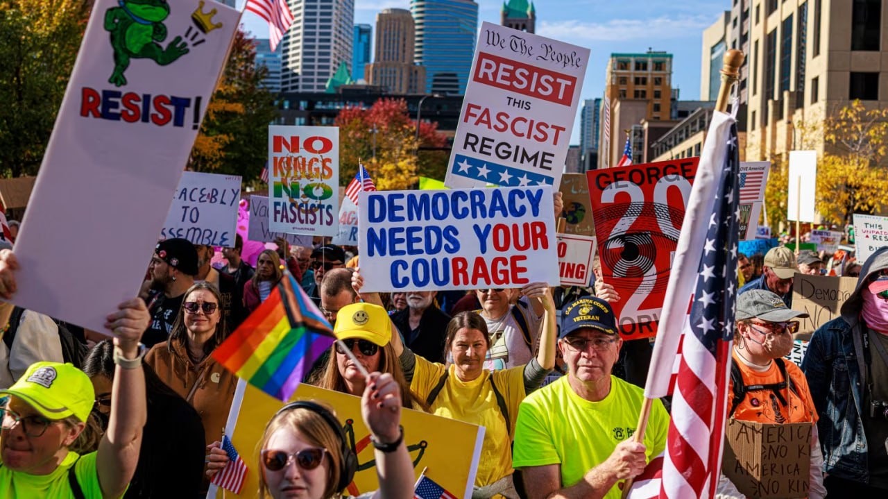 គួររម្លឹកថា ព្រឹត្តិការណ៍តវ៉ា No King បានកើតមានឡើងនៅទូទាំងសហរដ្ឋអាម៉េរិក ដែលធ្វើឡើងដើម្បីប្រឆាំងនឹងគោលនយោបាយរបស់ប្រធានាធិបតីត្រាំ និងតវ៉ាចំពោះការផ្អាកប្រតិបត្តិការស្ថាប័នរដ្ឋាភិបាលមួយចំនួន ជាមួយនឹងគោលបំណងអំពាវនាវរកលទ្ធិប្រជាធិបតេយ្យ និងប្រឆាំងទៅនឹងអ្វីដែលពួកគេយល់ថាជាការបំពានអំណាច និងអំពើពុករលួយក្រោមការគ្រប់គ្រងរបស់ប្រធានាធិបតីបច្ចុប្បន្ន ។