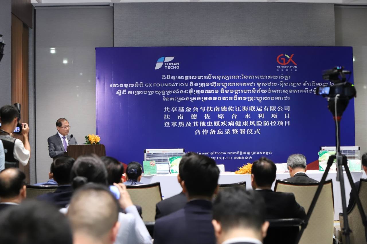 ភ្នំពេញ៖ ប្រជាពលរដ្ឋដែលរស់នៅតាមបណ្តោយគម្រោងព្រែកជីកហ្វូណនតេជោ និងនៅទីតាំងអាកាសយានដ្ឋានអន្តរជាតិតេជោ នឹងទទួលបានផលប្រយោជន៍ ពីគម្រោងប្រយុទ្ធប្រឆាំងជំងឺគ្រុនឈាម និងបង្ការហានិភ័យចំពោះសុខភាពពីជំងឺផ្សេងៗ នៃគម្រោងគ្រប់គ្រងធនធានទឹកចម្រុះហ្វូណនតេជោ បន្ទាប់ពីនៅថ្ងៃទី២១ ខែតុលា ឆ្នាំ២០២៥ ក្រុមហ៊ុនហ្វូណនតេជោ ខូសថល-អ៊ីនឡេន វ័រធើវេយ ឯ.ក, ក្រុមហ៊ុន ខេមបូឌា អ៊ែរផេត អ៊ុនវេសមិន ឯ.ក (CAIC) និងមូលនិធិ GX FOUNDATION របស់ហុងកុង ប្រទេសចិន បានចុះហត្ថលេខា លើអនុស្សរណៈនៃការយោគយល់គ្នា ដើម្បីចាប់ផ្តើមអនុវត្តគម្រោងនេះ។