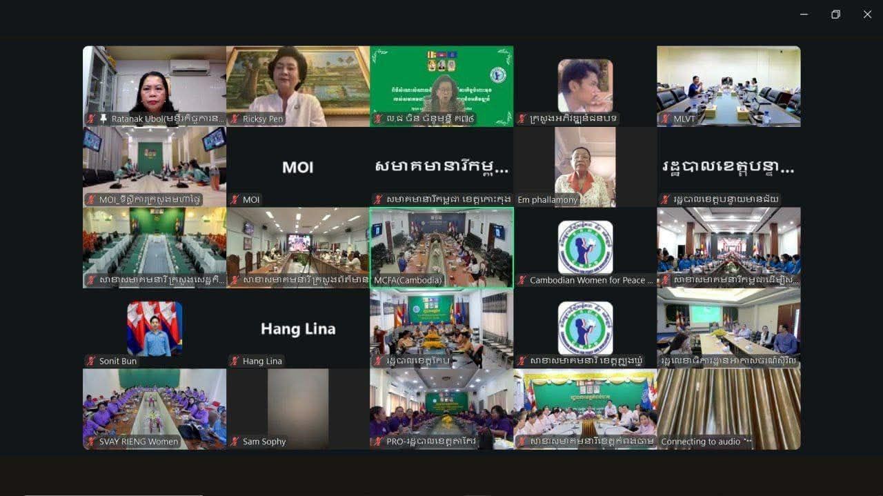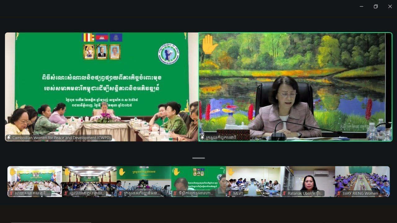 ភ្នំពេញ៖ សម្តេចកិត្តិសង្គហបណ្ឌិត ម៉ែន សំអន ប្រធានសមាគមនារីកម្ពុជាដើម្បីសន្តិភាព និងអភិវឌ្ឍន៍ បានជួបសំណេះសំណាលជាមួយសមាជិកសមាគមនៅទូទាំងប្រទេស តារយៈប្រព័ន្ធ ZOOM ដែលមានសមាសភាពចូលរួមចំនួនជាង ១ពាន់នាក់ នាថ្ងៃទី២២ ខែតុលា ឆ្នាំ ២០២៥។