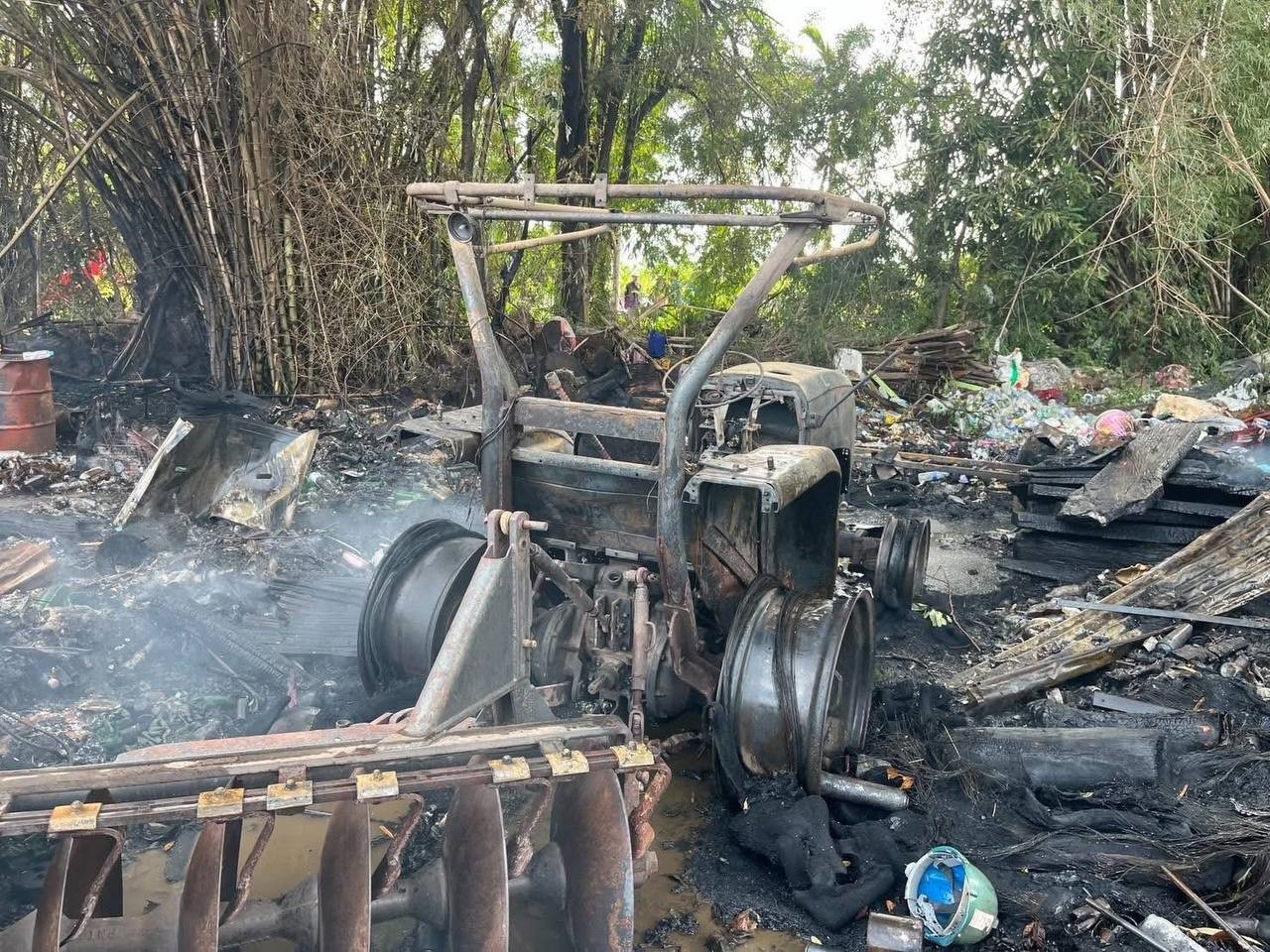 អគ្គិភ័យលេបត្របាក់ផ្ទះឈើក្នុងខេត្តលពបុរី ប្រទេសថៃ ខូចខាតត្រាក់ទ័រ និងយានជំនិះជាច្រើនគ្រឿង
