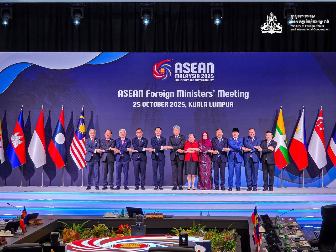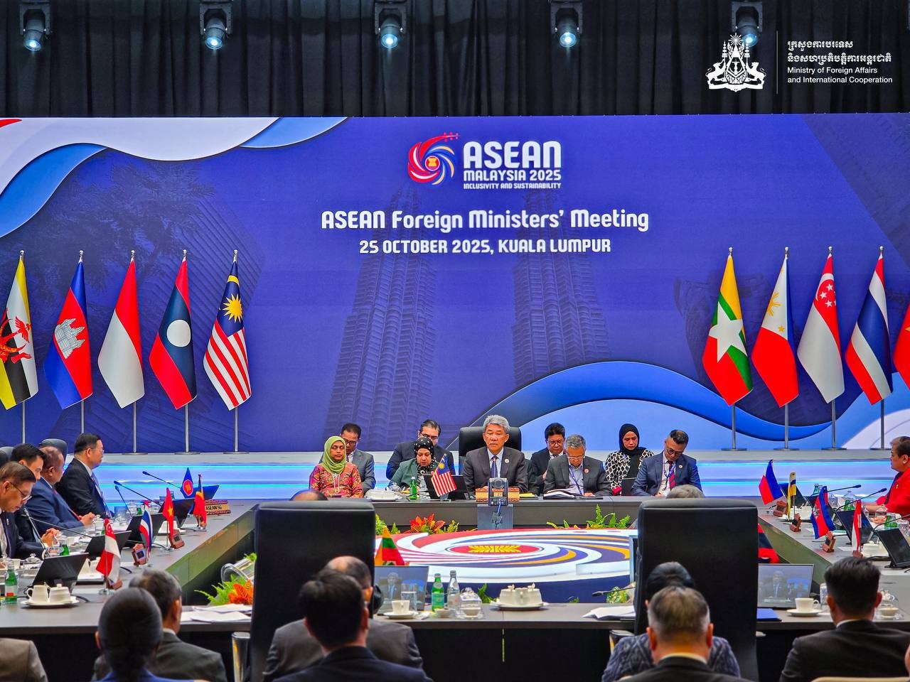 គូឡាឡាំពួ៖ នៅព្រឹកថ្ងៃទី២៥ ខែតុលា ឆ្នាំ២០២៥ លោកឧបនាយករដ្ឋមន្ត្រី ប្រាក់ សុខុន រដ្ឋមន្ត្រីការបរទេស និងសហប្រតិបត្តិការអន្តរជាតិ បានអញ្ជើញចូលរួមកិច្ចប្រជុំរដ្ឋមន្ត្រីការបរទេសអាស៊ាន នៅទីក្រុងគូឡាឡាំពួ ប្រទេសម៉ាឡេស៊ី។