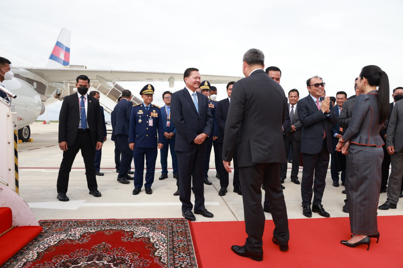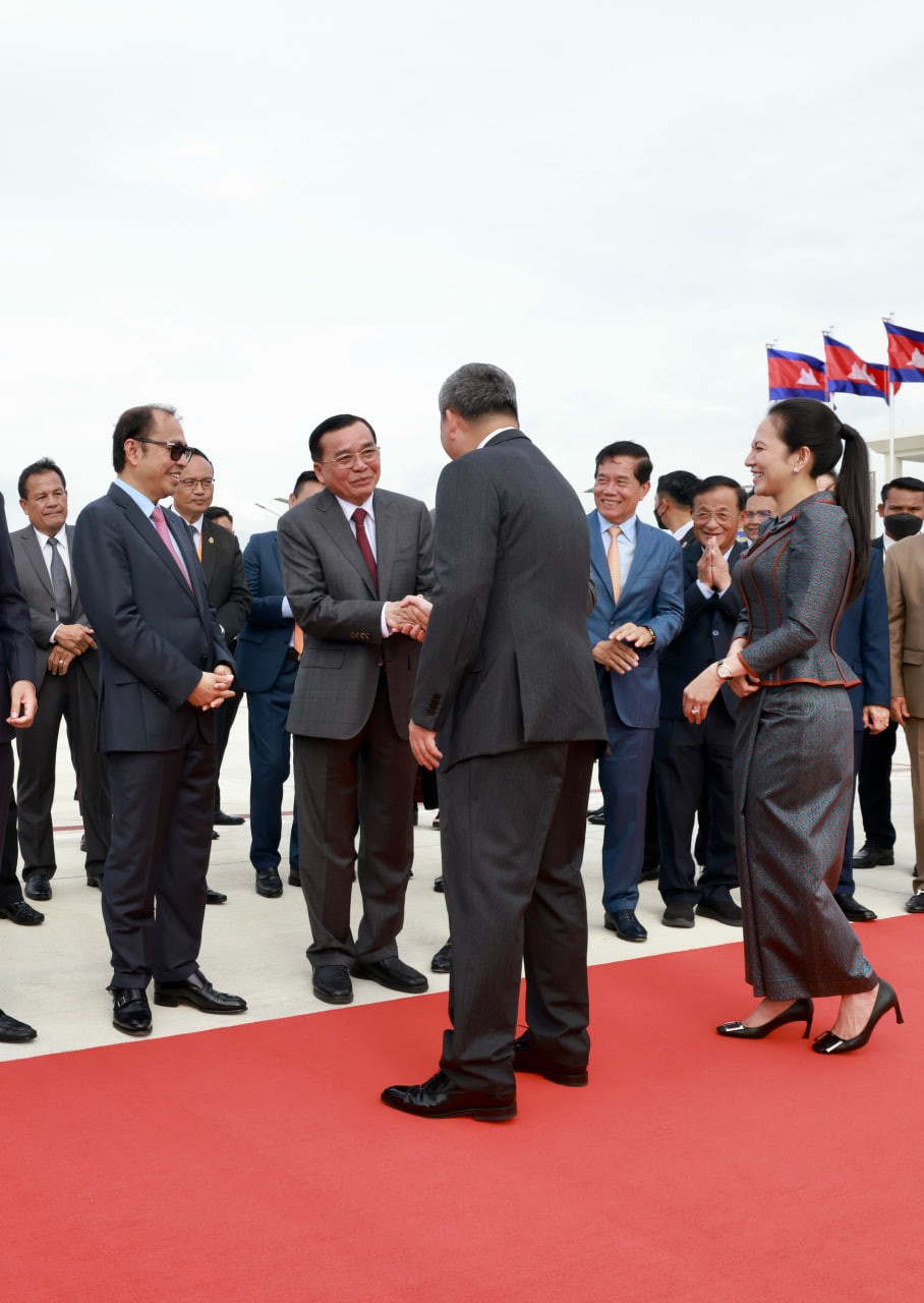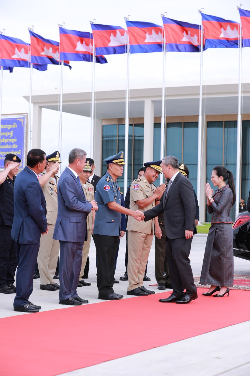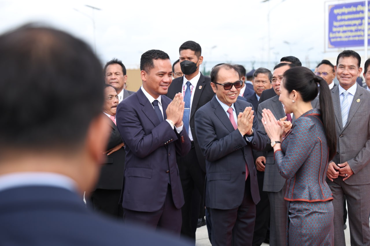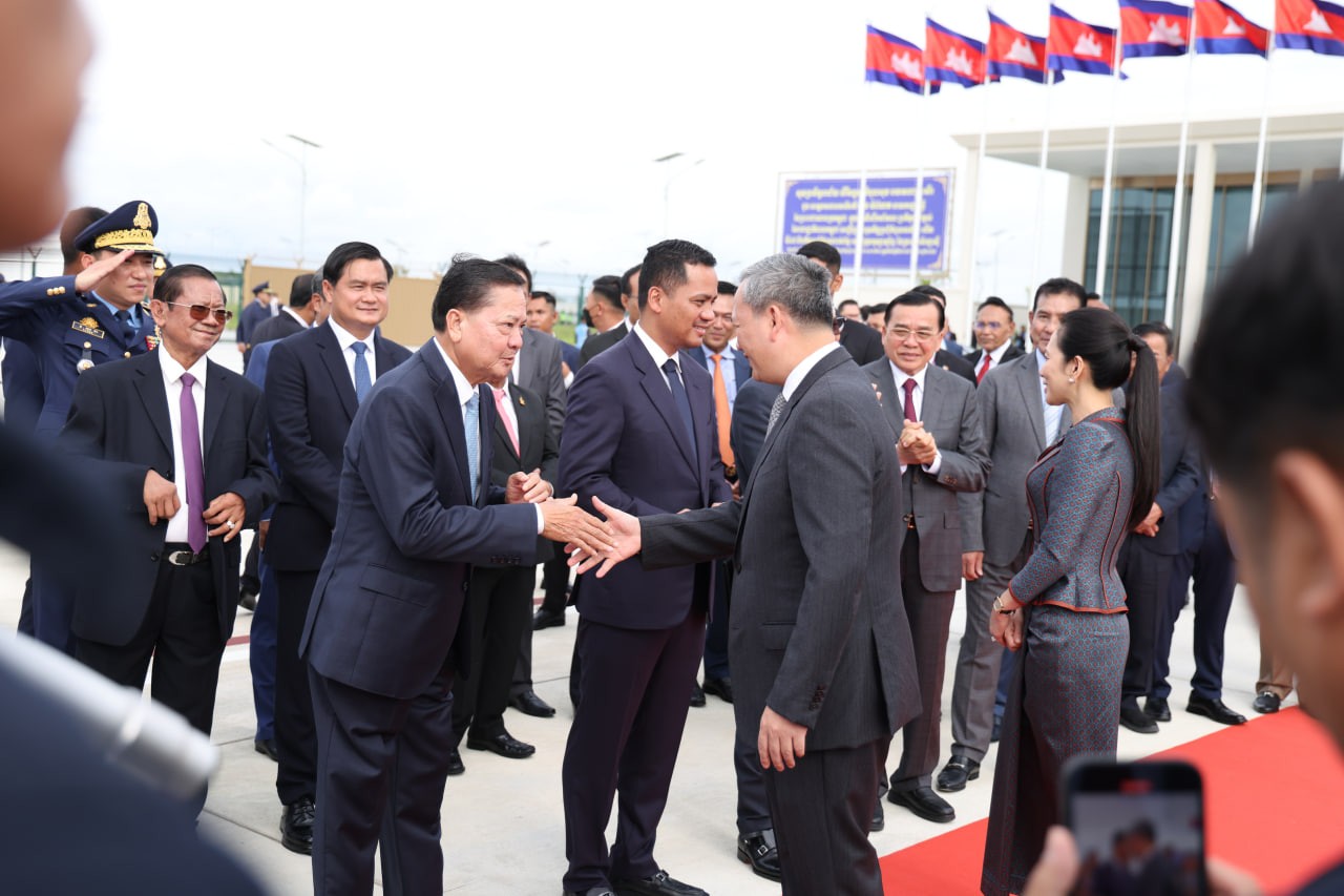 អញ្ជើញអមដំណើរ សម្តេចធិបតី និង លោកជំទាវបណ្ឌិត ពេជ ចន្ទមុន្នី ហ៊ុនម៉ាណែត រួមមាន លោក ប្រាក់ សុខុន ឧបនាយករដ្ឋមន្ត្រី និងជារដ្ឋមន្ត្រីការបរទេស និងសហប្រតិបត្តិការអន្តរជាតិ រួមជាមួយឧបនាយករដ្ឋមន្ត្រី ទេសរដ្ឋមន្ត្រី រដ្ឋមន្ត្រី និងមន្ត្រីជាន់ខ្ពស់រដ្ឋាភិបាល ព្រមទាំងតំណាងធុរកិច្ច មកពីសភាពាណិជ្ជកម្មកម្ពុជា និងសមាគមឧកញ៉ាកម្ពុជា។