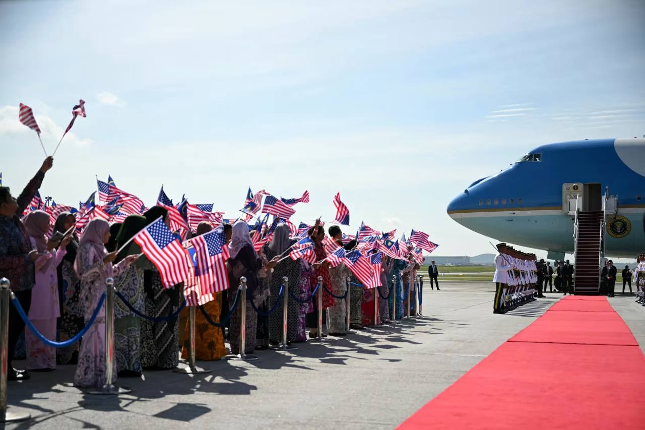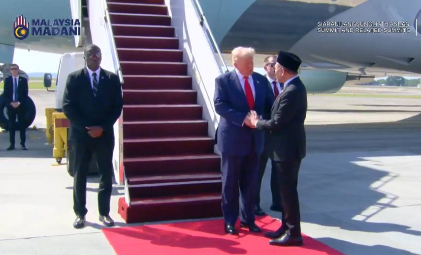 ម៉ាឡេស៉ី៖ ប្រធានាធិបតីអាមេរិក លោក ដូណាល់ ត្រាំ បានអញ្ជើញមកដល់ទីក្រុងកូឡាឡាំពួ ប្រទេសម៉ាឡេស៉ីហើយ ម៉ោងប្រមាណ១០ព្រឹក (នៅកម្ពុជាម៉ោង៩ព្រឹក) ថ្ងៃទី២៦ ខែតុលា ឆ្នាំ២០២៥នេះ ដើម្បីចូលរួមធ្វើជាសាក្សីនៃពិធីចុះកិច្ចព្រមព្រៀងសន្តិភាពកម្ពុជា-ថៃ និងចូលរួមក្នុងកិច្ចប្រជុំកំពូលអាស៊ាន លើកទី៤៧។
