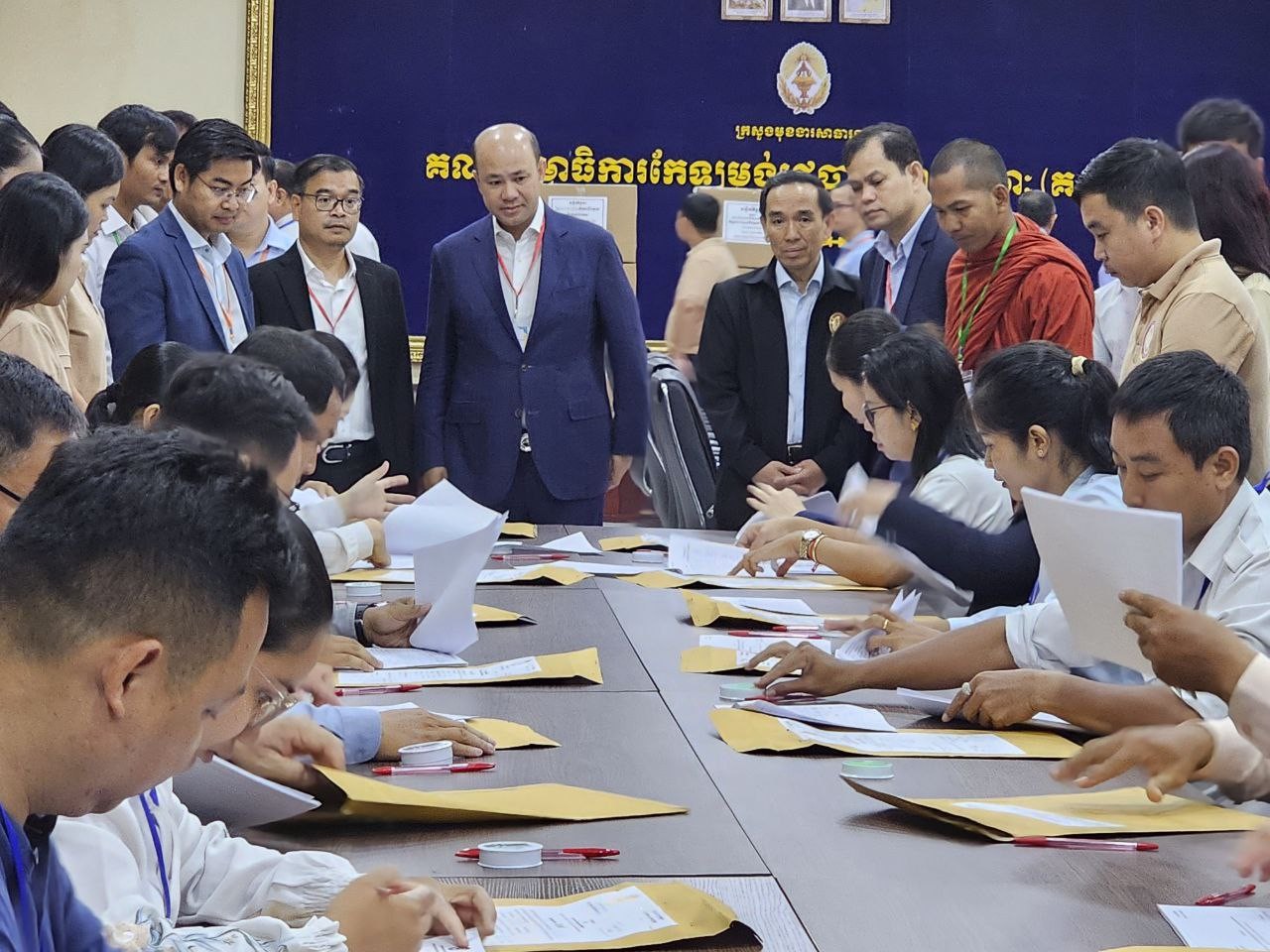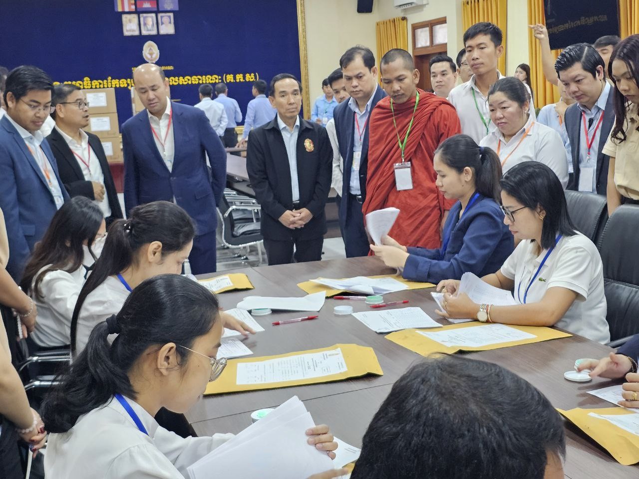 ភ្នំពេញ៖ លោកឧបនាយករដ្ឋមន្ត្រី ហ៊ុន ម៉ានី រដ្ឋមន្ត្រីក្រសួងមុខងារសាធារណៈ និងជាប្រធានគណៈកម្មការប្រឡង ប្រជែង នៅព្រឹកថ្ងៃទី២៦ខែតុលានេះ បានអញ្ជើញ បើកវិញ្ញាកំណែ ប្រឡងជ្រើសរើសគ្រូបឋមសិក្សា ដែលបានប្រឡងកាលពីថ្ងៃ ទី២៥ខែតុលា មានចំនួន៨៨៩៥សន្លឹក នៅសាលាភូមិន្ទរដ្ឋបាល ដោយមានការ ចូលរួមសង្កេតការណ៏ពីសំណាក់ មន្ត្រី អង្គភាពប្រឆាំងអំពើពុករលួយនិងអ្នកសង្កេតការណ៏មកពីស្ថាប័នមួយចំនួនទៀត។