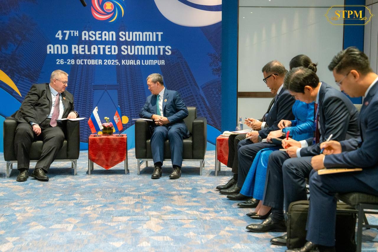 សម្តេចបវរធិបតី ហ៊ុន ម៉ាណែត និងឧបនាយករដ្ឋមន្ត្រី នៃសហព័ន្ធរុស្ស៊ីឯកភាពគ្នាបន្តពង្រឹង និងពង្រីក កិច្ចសហប្រតិបត្តិការទ្វេភាគីថែមទៀត ។ ការឯកភាពគ្នានេះក្នុងឱកាសដែលសម្តេចមហាបវរធិបតី ហ៊ុន ម៉ាណែត នាយករដ្ឋមន្រ្តី នៃព្រះរាជាណាចក្រកម្ពុជា បានអនុញ្ញាតឱ្យឯកឧត្តម Alexei Overchuk, ឧបនាយករដ្ឋមន្ត្រី នៃសហព័ន្ធរុស្ស៊ី ចូលជួបសម្ដែងការគួរសម និងពិភាក្សាការងារ នាព្រឹក ថ្ងៃទី២៨ ខែតុលា ឆ្នាំ២០២៥ ក្នុងឱកាសចូលរួមកិច្ចប្រជុំកំពូលអាស៊ាន លើកទី៤៧ និងកិច្ចប្រជុំកំពូលពាក់ព័ន្ធ នៅទីក្រុងគូឡាឡាំពួ ប្រទេសម៉ាឡេស៊ី នៅថ្ងៃទី២៦-២៨ ខែតុលា ឆ្នាំ២០២៥។