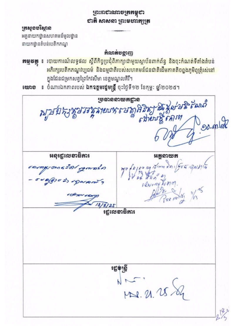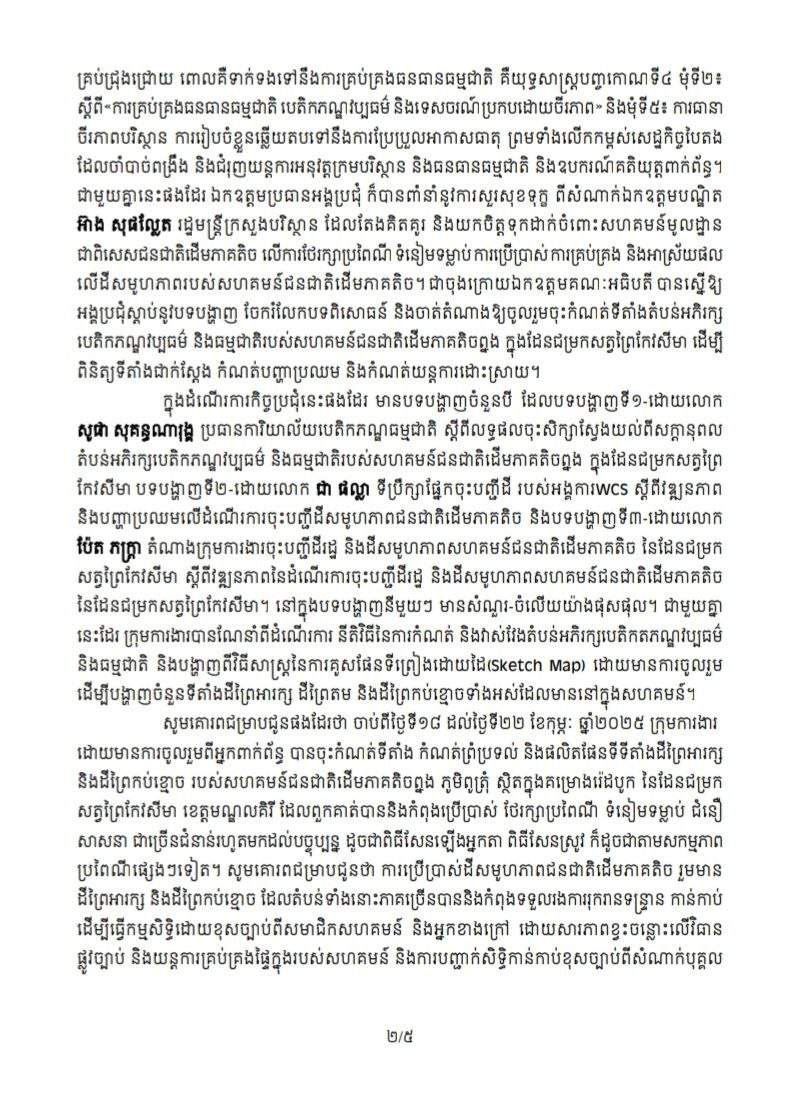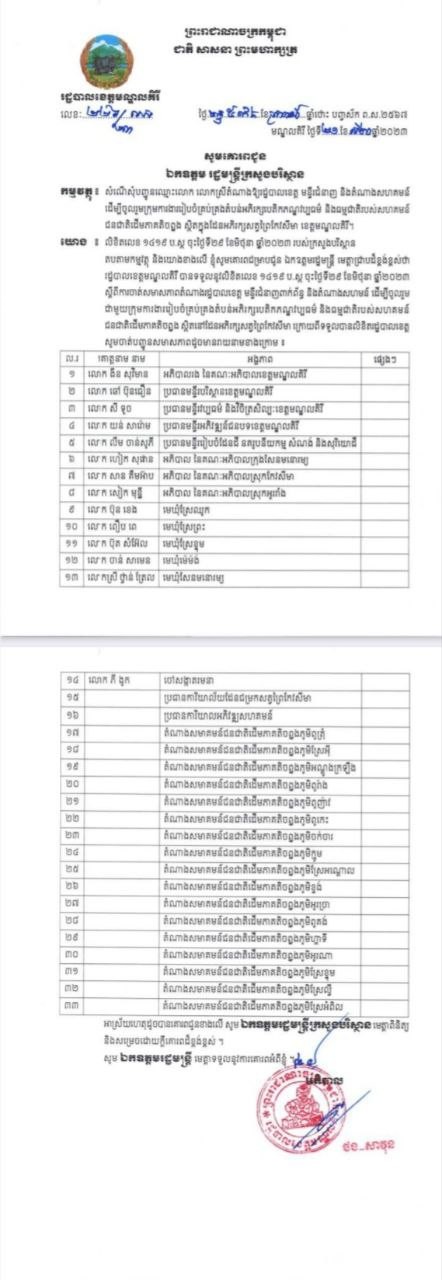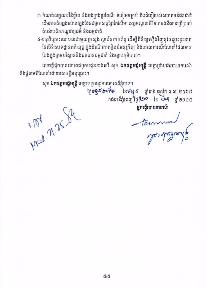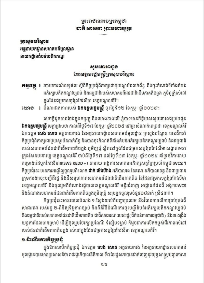រដ្ឋបាលខេត្តមណ្ឌលគិរី ទទួលយកសំណើរក្រសួងបរិស្ថាន ពាក់ព័ន្ធនឹងការលើកកម្ពស់ការអភិរក្សទីតាំងបេតិកភណ្ឌវប្បធម៌ និងធម្មជាតិ របស់សហគមន៍ជនជាតិដើមភាគតិចព្នង