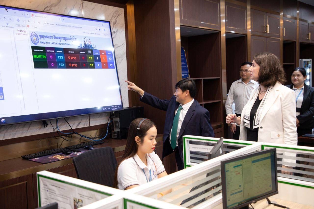 បន្ទាប់ពីបញ្ចប់ជំនួបពិភាក្សាការងារ លោករដ្ឋមន្ត្រីបានអញ្ជើញលោកស្រី Tania Meyer ប្រធានគ្រប់គ្រងធនាគារពិភពលោកប្រចាំនៅកម្ពុជា និងគណៈប្រតិភូទៅទស្សនាបន្ទប់ផ្តល់ព័ត៌មាន ២៤ម៉ោង តាមរយៈលេខទូរសព្ទ Hotline 1297 ដែលបម្រើសេវាកម្មស្វែងរកការងារធ្វើដល់បងប្អូនប្រជាពលរដ្ឋ ជាពិសេសពលករខ្មែរដែលបានវិលត្រឡប់មកពីប្រទេសថៃវិញ៕