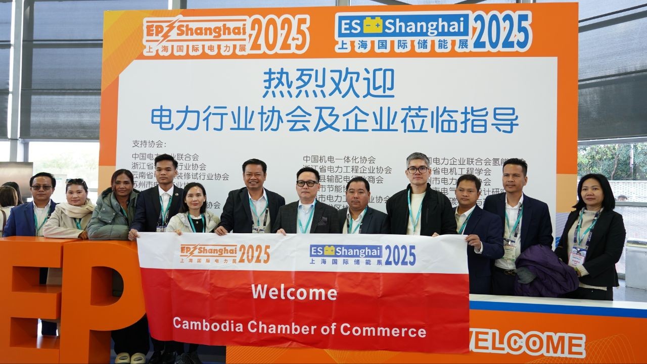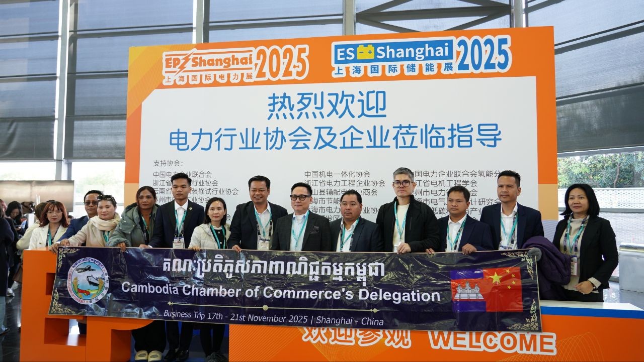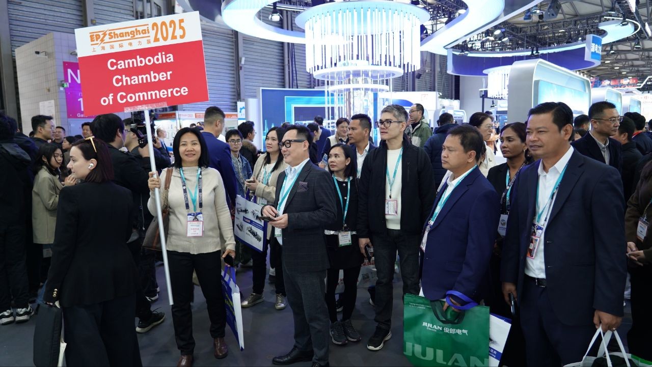 សៀងហៃ៖ ដោយទទួលបានការអនុញ្ញាតពីអ្នកឧកញ៉ា គិត ម៉េង ប្រធានសភាពាណិជ្ជកម្មកម្ពុជា និងជាប្រធានក្រុមប្រឹក្សាពិគ្រោះយោបល់ធុរកិច្ចអាស៊ានសម្រាប់កម្ពុជា នាថ្ងៃទី១៨ ខែវិច្ឆិកា ឆ្នាំ២០២៥ លោក ចាង ជីវិញ អនុប្រធានសភាពាណិជ្ជកម្មកម្ពុជា និងជាប្រធានសភាពាណិជ្ជកម្មខេត្តកោះកុង បានដឹកនាំគណៈប្រតិភូសភាពាណិជ្ជកម្មកម្ពុជា ចំនួន ១៦រូប ចូលរួមពិព័រណ៍អន្តរជាតិលើកទី៣២ ស្តីពីឧបករណ៍ និងបច្ចេកវិទ្យាថាមពលអគ្គិសនី ក្នុងទីក្រុងសៀងហៃ
