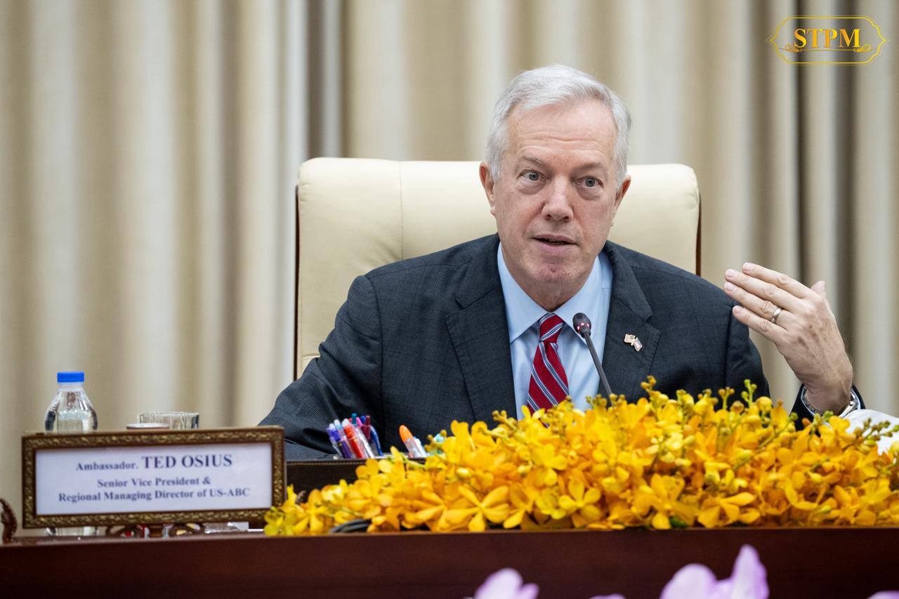 ក្នុងឱកាសនៃជំនួបឯកឧត្តម ក៏បានថ្លែងអំណរគុណដល់រាជរដ្ឋាភិបាល និងក្រសួង-ស្ថាប័ន ពាក់ព័ន្ធកម្ពុជាទាំងអស់ ដែលតែងតែបានផ្ដល់ការគាំទ្រ និងកិច្ចសហការយ៉ាងជិតស្និទ្ធជាមួយ US-ABC នាពេលកន្លងមក ព្រមទាំងបានវាយតម្លៃខ្ពស់ចំពោះការប្ដេជ្ញាចិត្តរបស់ក្រសួង -ស្ថាប័នកម្ពុជា ក្នុងការដោះស្រាយបញ្ហា និងសំណូមពរនានា របស់បណ្ដាក្រុមហ៊ុនដែលកំពុងវិនិយោគនៅកម្ពុជា ប្រកបភាពស្មោះត្រង់ និងបើកចំហ។ ឯកឧត្តម Ted Osius ក៏បានសម្ដែងនូវសុទិដ្ឋិនិយមចំពោះភាពជាអ្នកដឹកនាំរបស់សម្ដេចបវរធិបតី និងបានវាយតម្លៃខ្ពស់ចំពោះការរៀបចំវេទិការាជរដ្ឋាភិបាល-ផ្នែកឯកជន (G-PSF) ដែលជាវេទិកាដ៏មានសារៈសំខាន់សម្រាប់វិនិយោគិន និងវិស័យឯកជន។