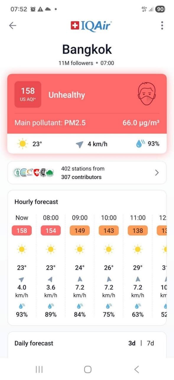 យោងតាមកម្មវិធីអាយឃ្យូអ៊ែរ (IQAir) នេះគឺជាថ្ងៃទី៣ ជាប់ៗគ្នាហើយសម្រាប់រាជធានីរបស់ប្រទេសថៃ ខណៈបច្ចុប្បន្ន បាងកកកំពុងឈរនៅលេខរៀងទី ១៨ ក្នុងចំណោមទីក្រុងធំៗដែលមានការបំពុលខ្យល់ខ្លាំងបំផុតនៅលើពិភពលោក ៕