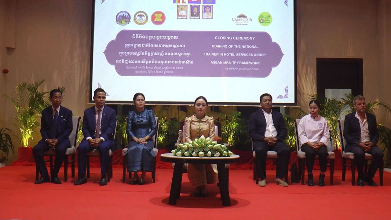 លោក គង់ សឿន អនុប្រធានមន្ទីទេសចរណ៍ខេត្តសៀមរាប បានលើកឡើងបែបនេះ នៅក្នុងពិធីបិទវគ្គបណ្តុះបណ្តាល គ្រូបង្គោលជាតិនៃសេវាកម្មសណ្ឋាគារតាមស្តង់ដាអាស៊ាន កាលពីរសៀលថ្ងៃទី២៩ ខែមករា ឆ្នាំ២០២៦ នៅសណ្ឋាគារមេម័រ ក្រុងសៀមរាប។