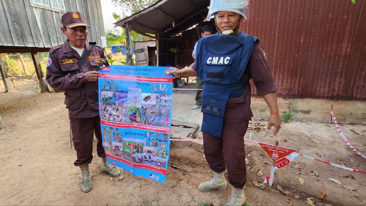 ឧត្តរមានជ័យ៖ មជ្ឈមណ្ឌលសកម្មភាពកំចាត់មីនកម្ពុជា CMAC) បានសម្រេចដាក់ ភូមិផ្អុង សង្កាត់កូនក្រៀល ក្រុងសំរោង ខេត្តឧត្តរមានជ័យ ជាតំបន់គ្រោះថ្នាក់ ក្រោយរកឃើញគ្រាប់បែកចង្កោមដែលថៃបានផ្លោង និងគ្រាប់ទម្លាក់ពីលើយន្តហោះ អំឡុងពេលយោធាថៃបើកការឈ្លានពានមកលើបូរណភាពទឹកដីកម្ពុជា កាលពីថ្ងៃទី៨ ដល់ថ្ងៃទី២៧ ខែធ្នូ ឆ្នាំ២០២៥ ហេីយបច្ចុប្បន្នបាននៅរាយប៉ាយលើដីភូមិឋាន ដីស្រែចម្ការ និងនៅតាមទីសាធារណៈនានា។