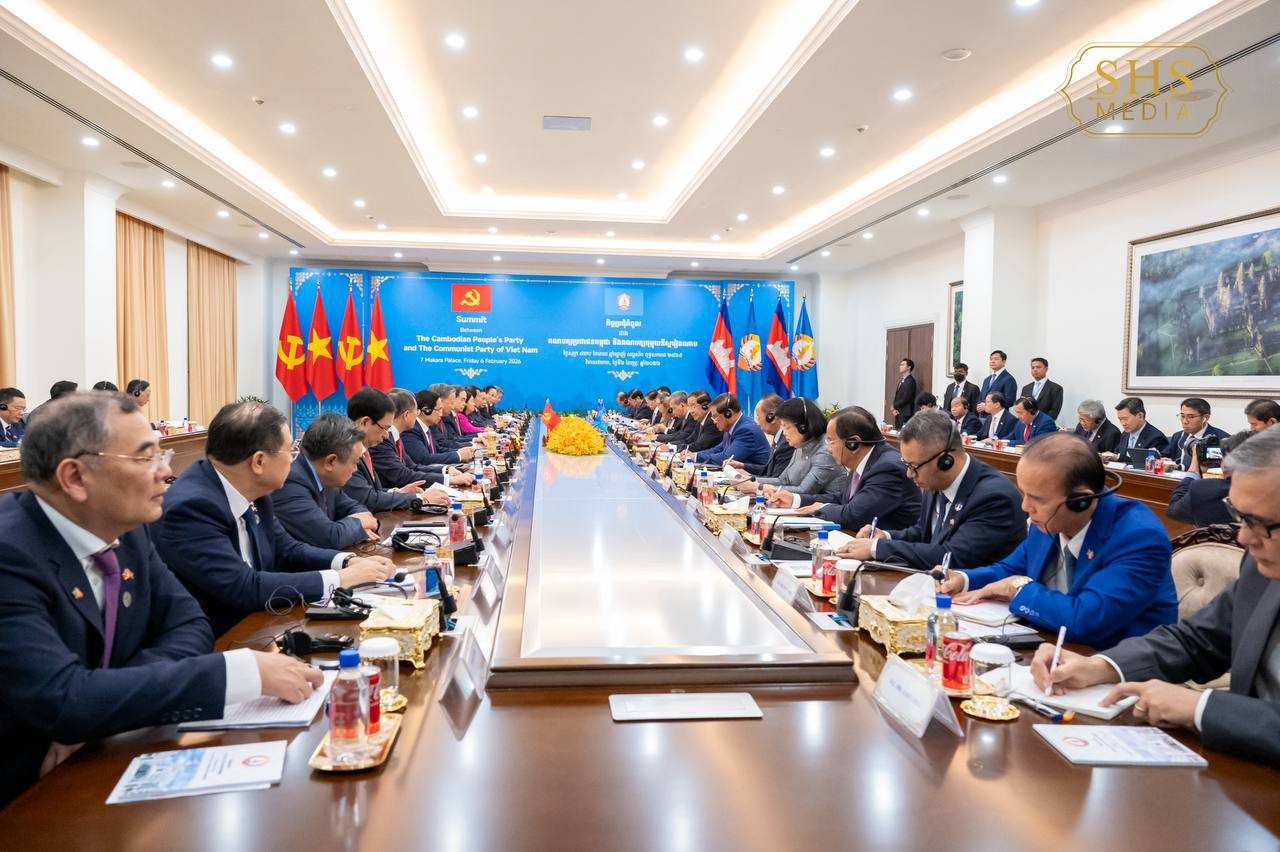 អញ្ជើញដឹកនាំកិច្ចប្រជុំកំពូលរវាងគណៈអចិន្ត្រៃយ៍នៃគណៈកម្មាធិការកណ្តាលគណបក្សប្រជាជនកម្ពុជា ជាមួយការិយាល័យមជ្ឈិមបក្សកុម្មុយនីស្តវៀតណាម នៅវិមាន៧មករា រាជធានីភ្នំពេញ នាថ្ងៃទី៦ ខែកុម្ភៈ ឆ្នាំ២០២៦នេះ។