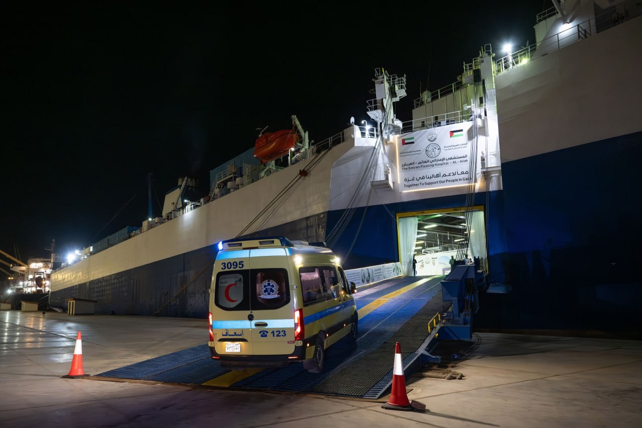 អារ៉ាប់រួម៖ នាវានៃ «មន្ទីរពេទ្យបណ្ដែតទឹក» របស់ប្រទេសអារ៉ាប់រួម ដែលកំពុងឈប់សំចតនៅកំពង់ផែ អាល់ អារីស (Al-Arish) ប្រទេសអេស៊ីប កំពុងបន្តផ្តល់សេវាវេជ្ជសាស្ត្រ និងការព្យាបាលយ៉ាងសកម្ម ដល់អ្នកជំងឺ និងអ្នករងរបួសដែលមកពីតំបន់ហ្គាហ្សា ដែលនេះគឺជាផ្នែកមួយនៃប្រតិបត្តិការមនុស្សធម៌ ហ្គាលែន ណៃហ្វ៍ ៣ (Gallant Knight 3) ។