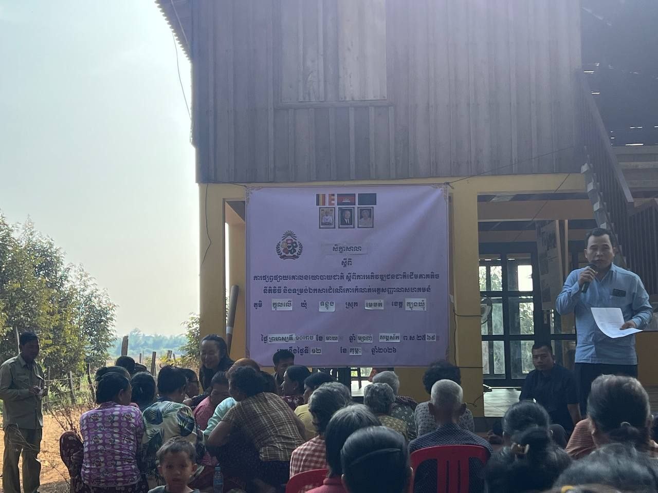 ត្បូងឃ្មុំ៖ ក្រសួងអភិវឌ្ឍន៍ជនបទ នៅថ្ងៃទី១៣ ខែកុម្ភៈ ឆ្នាំ២០២៦ បានបើកសិក្ខាសាលាស្តីពី ការផ្សព្វផ្សាយគោលនយោបាយជាតិ ស្តីពីការអភិវឌ្ឍន៍ជនជាតិដើមភាគតិច នីតិវិធី និងទម្រង់ឯកសារដំណើរការនៃការកំណត់អត្តសញ្ញាណសហគមន៍ ដោយមានការចូលរួមពីប្រជាជន ជនជាតិដើមភាគតិច «ស្ទៀង» មន្ត្រីមកពីមន្ទីរអភិវឌ្ឍន៍ជនបទខេត្តត្បូងឃ្មុំ រដ្ឋបាលស្រុកមេមត់ អាជ្ញាធរឃុំទន្លូង និងអាជ្ញាធរភូមិក្តុលលើ ស្ថិតនៅទីតាំងផ្ទះសហគមន៍ស្ទៀងភូមិក្តុលលើ នៃមជ្ឈមណ្ឌលឯកសារកម្ពុជា។