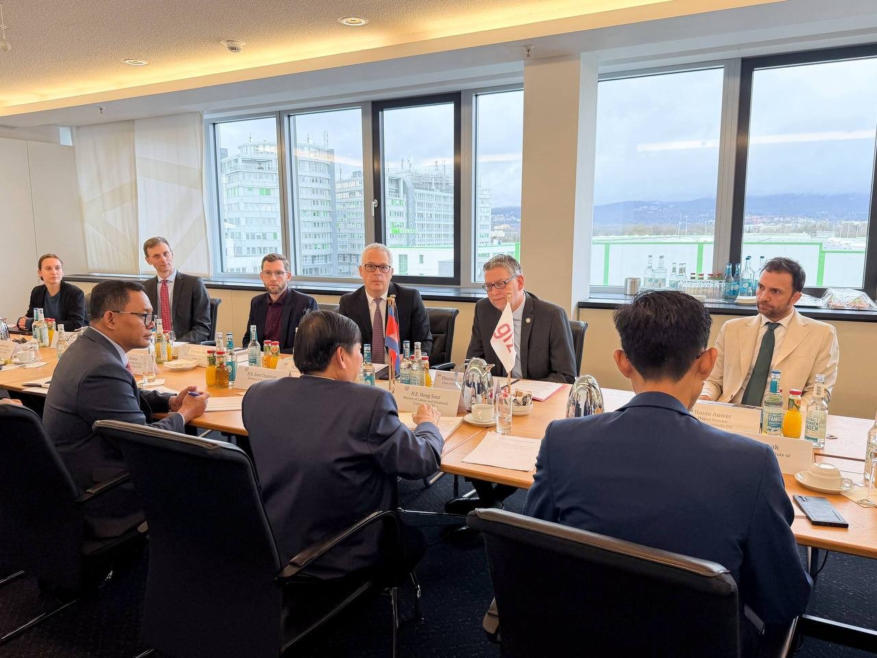 នៅក្នុងឱកាសនោះ ប្រតិភូបានជួបពិភាក្សាការងារជាមួយលោក ថស៍ស្ទីន ហ្សាវហ្វឺ ហ្គាមបល (Thorsten Schafer Gumbel) ប្រធានក្រុមប្រឹក្សាភិបាលនៃទីភ្នាក់ងារសហប្រតិបត្តិការអាល្លឺម៉ង់ (GIZ) ដែលនៅក្នុងជំនួបនោះភាគីទាំងពីរបានរំលឹកពីចំណងមិត្តភាពការទូតដ៏យូរលង់ និងកិច្ចសហប្រតិបត្តិការដ៏ល្អរវាងកម្ពុជា និងអាល្លឺម៉ង់។ ភាគីទាំងពីរក៏បានឯកភាពគ្នាក្នុងការបន្តពង្រឹងកិច្ចសហប្រតិបត្តិការលើវិស័យការងារ សន្តិសុខសង្គម និងបណ្តុះបណ្តាលវិជ្ជាជីវៈ ជាពិសេសលើការលើកកម្ពស់ការអភិវឌ្ឍជំនាញ ដែលជាកត្តាចាំបាច់សម្រាប់កម្ពុជាក្នុងការបន្តរក្សាបាននូវភាពប្រកួតប្រជែងនៅពេលកម្ពុជាបានចាកចេញពីប្រទេសអភិវឌ្ឍតិចតួច (LDC)។