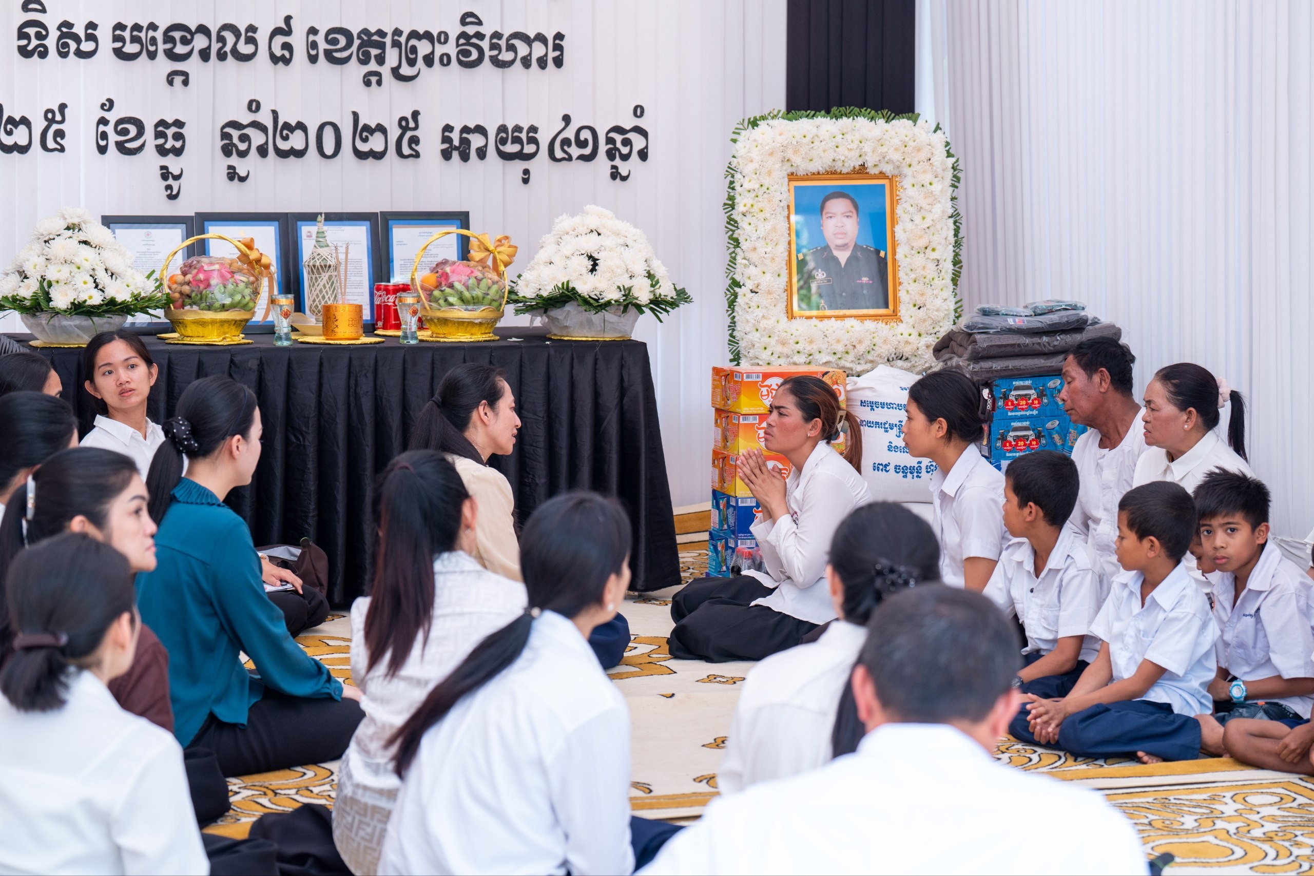 ក្នុងឱកាសនោះ លោកជំទាវបណ្ឌិត បានពាំនាំប្រសាសន៍ចូលរួមរំលែកមរណទុក្ខដ៏ក្រៀមក្រំបំផុត រួមជាមួយប្រសាសន៍សួរសុខទុក្ខពីសម្តេចអគ្គមហាសេនាបតីតេជោ ហ៊ុន សែន សម្តេចកិត្តិព្រឹទ្ធបណ្ឌិត ប៊ុន រ៉ានី ហ៊ុនសែន រួមទាំងសម្តេចមហាបវរធិបតី ហ៊ុន ម៉ាណែត ជូនដល់ក្រុមគ្រួសារនៃសពផងដែរ។