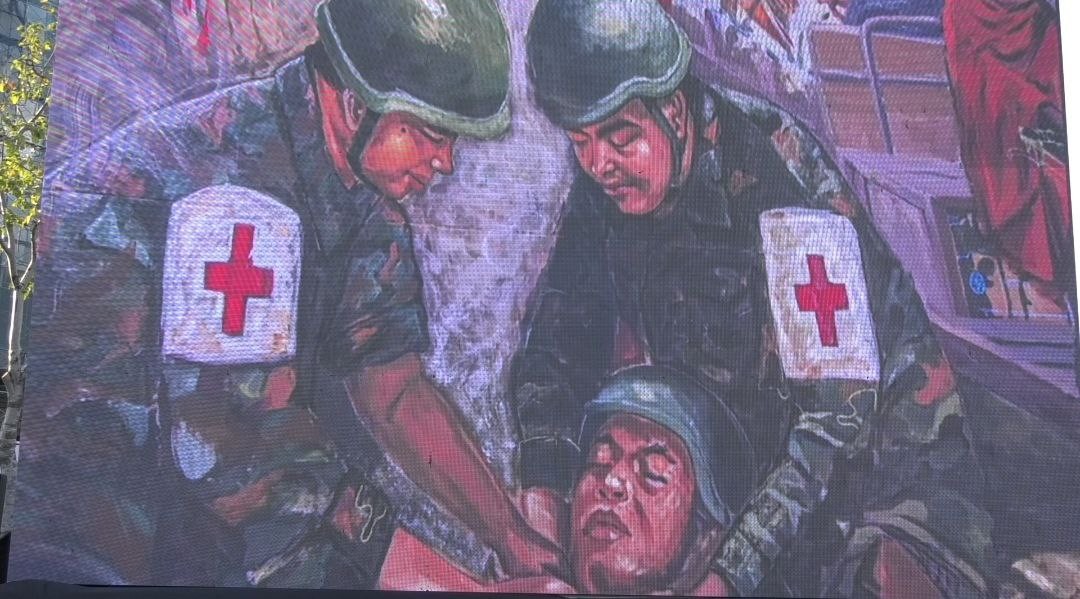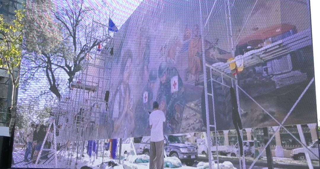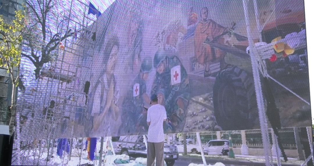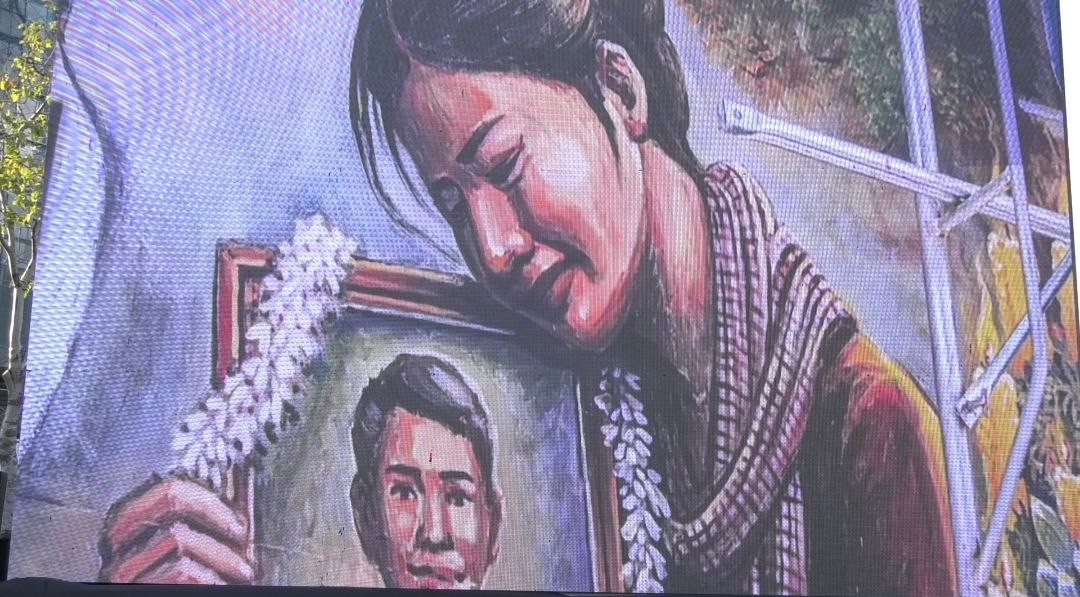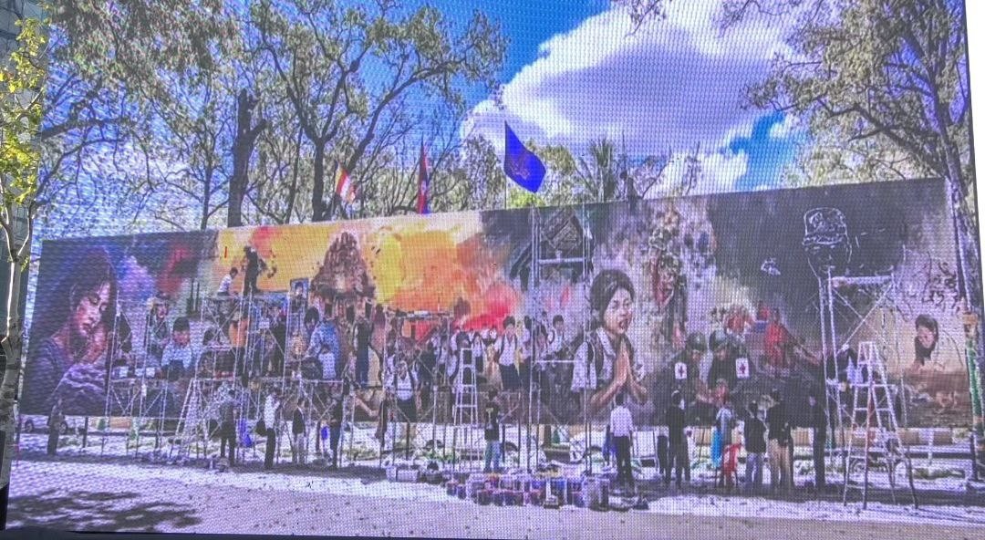 ផ្ទាំងគំនូរ «សិល្បៈដើម្បីសន្តិភាព» ទី២ បង្ហាញពីសង្គ្រាមថៃឈ្លានពានកម្ពុជា និងប្រមាថសាសនាហិណ្ឌូ បានតាំងនៅពីមុខសួនច្បារវត្តបុទុមបវតី