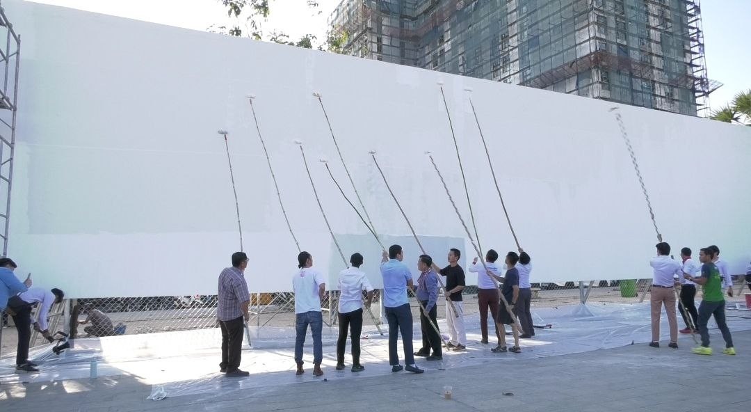 ភ្នំពេញ៖ កាលពីល្ងាចថ្ងៃទី២០ ខែកុម្ភៈម្សិលមិញ ក្រុមការងារនៃគម្រោងសិល្បៈដើម្បីសន្តិ ភាព បានរៀបចំគូផ្ទាំងគំនូរសិល្បៈ ដើម្បីសន្តិភាព នៅរាជធានីភ្នំពេញ ចំណុចសួនច្បារពីមុខវត្តបទុមវតី គឺជាផ្ទាំងគំនូរទី២ បន្ទាប់ពីផ្ទាំងគនូរ នៅខេត្តសៀមរាប។ ការគូគំនូរនេះដែរ ត្រូវប្រើរយៈ ១២ថ្ងៃ ចាប់ពីថ្ងៃទី២០ ខែកុម្ភៈតទៅ។