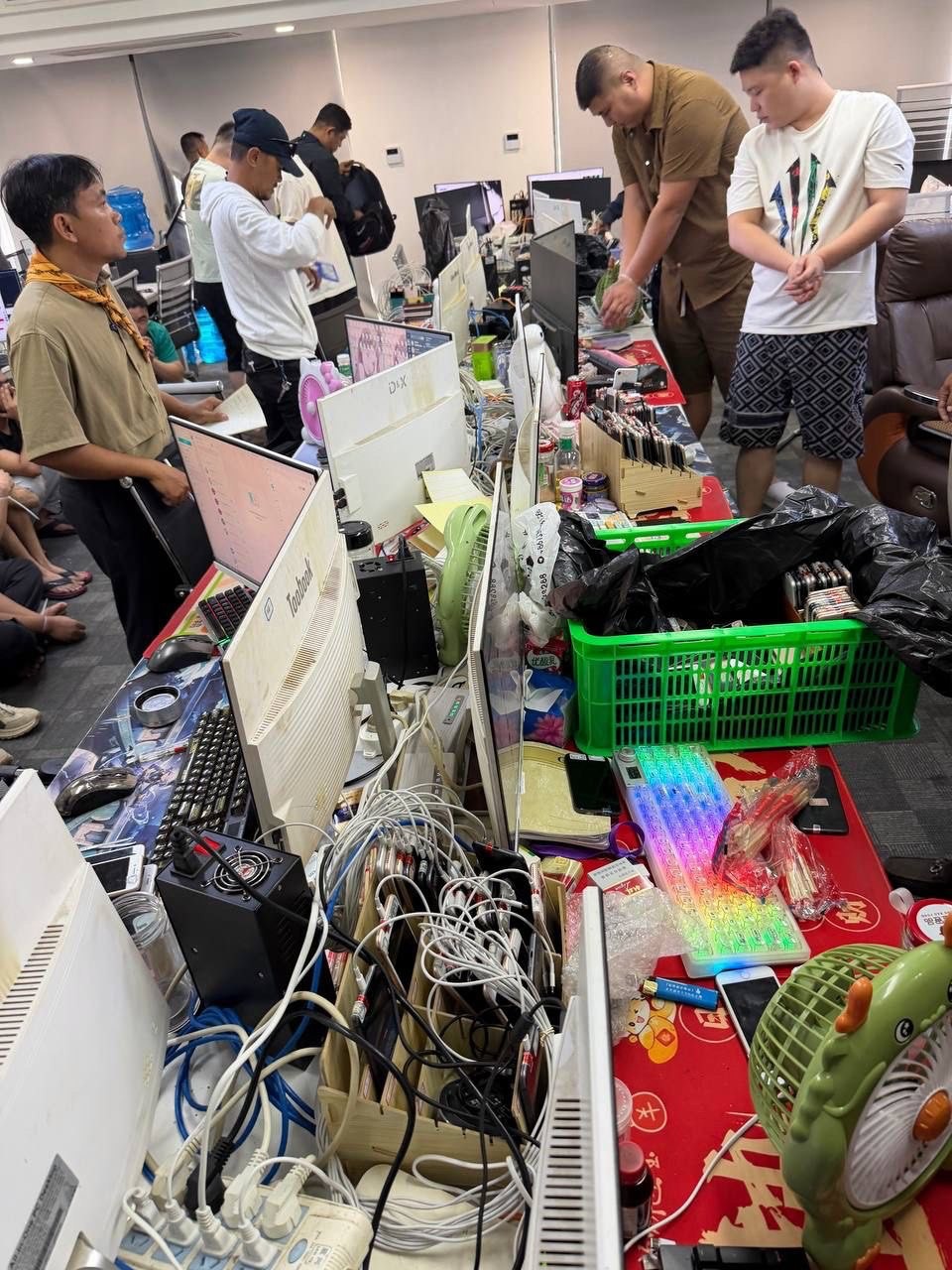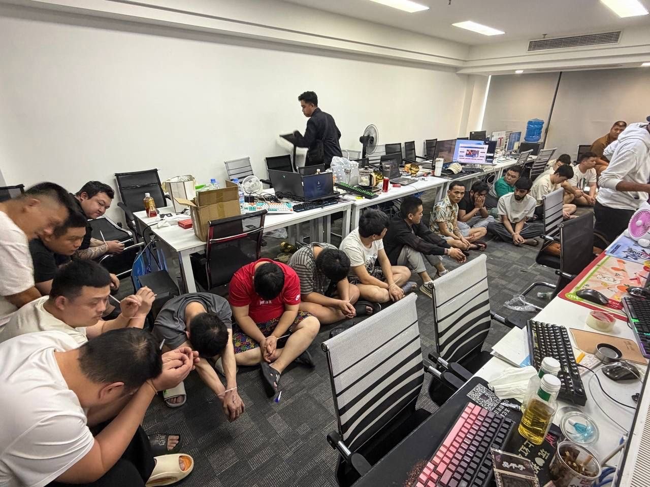 មនុស្សប្រុសស្រីទាំង ២១នាក់ ដែលត្រូវបានឃាត់ខ្លួននេះ មានជនជាតិចិន ចំនួន ១៦នាក់ ឥណ្ឌា ១នាក់ ប៉ាគីស្ថាន ២នាក់ ក្នុងនោះស្ត្រី ១នាក់ និងនេប៉ាល់ ចំនួន២នាក់។ ក្នុងនោះដែរ សមត្ថកិច្ច ក៏បានដកហូតវត្ថុតាងរួមមានកុំព្យូទ័រ All in One កុំព្យូទ័រយួរដៃ និងទូរសព្ទដៃមួយចំនួនផងដែរ។