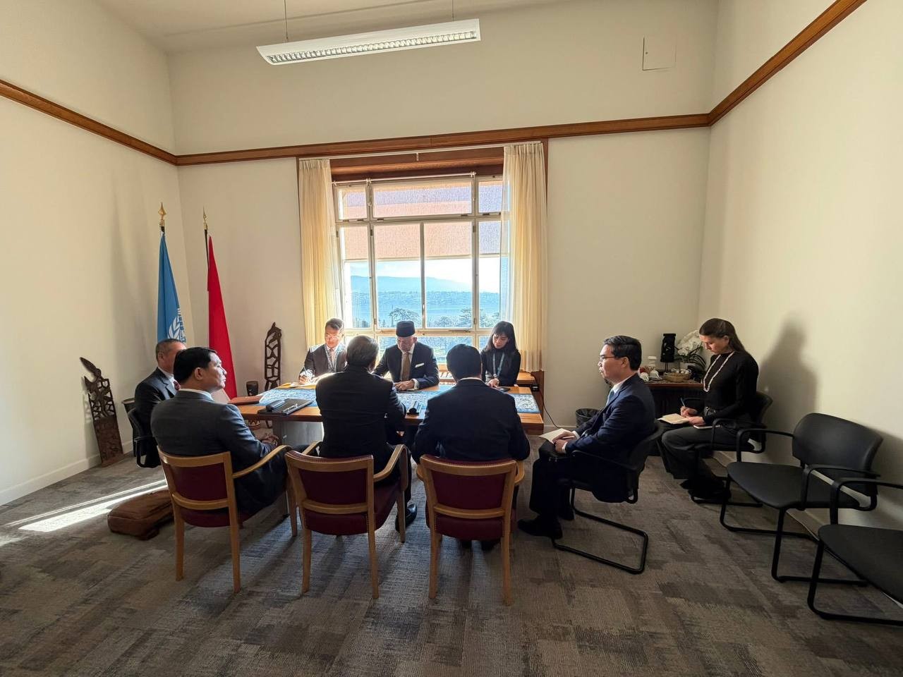 ហ្សឺណែវ៖ គណ:ប្រតិភូកម្ពុជាបន្តជួបម្តងមួយៗនៃតំណាងប្រទេសដែលជាសមាជិកក្រុមប្រឹក្សាសិទ្ធិមនុស្ស ក្នុងនោះ បានជួបជាមួយ អគ្គរដ្ឋទូតឥណ្ឌូនេសុី និងជាប្រធានក្រុមប្រឹក្សាសិទ្ធិមនុស្សនៅហ្សឺណែវ គឺ លោក Sidharto Reza Suryodipuro, President of Human Rights Council។