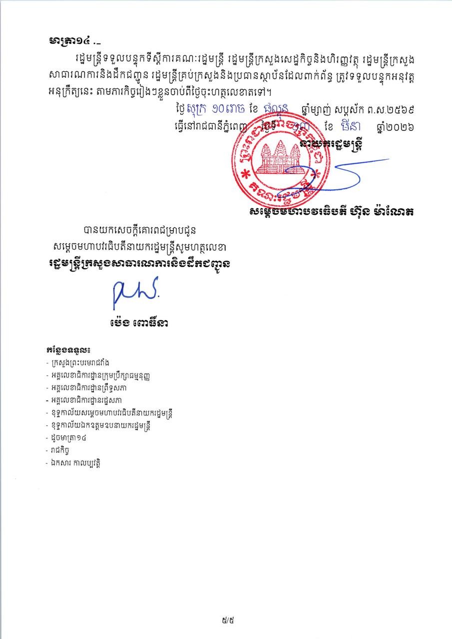 សម្តេចបវរធិបតី ហ៊ុន ម៉ាណែត ចេញអនុក្រឹត្យ ស្តីពី ការបង្កើតកំពង់ផែពហុបំណង និងមណ្ឌលភស្តុភាកម្មកំពង់ឆ្នាំង