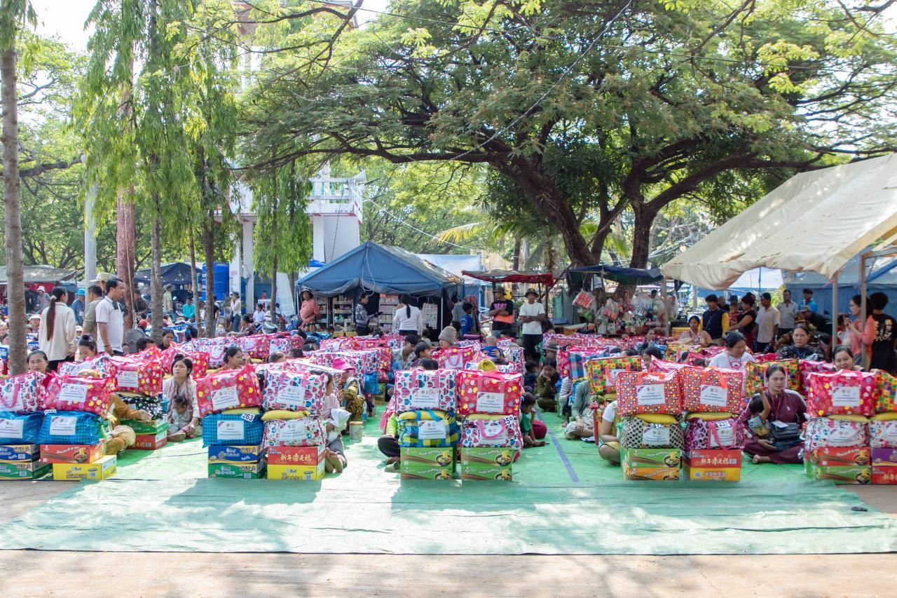 លោកបណ្ឌិត គុណ ញឹម នាំយកអំណោយគ្រឿងឧបភោគបរិភោគ និងសម្ភារ ផ្តល់ជូនជនភៀសសឹក ដែលកំពុងស្នាក់នៅតាមមណ្ឌលសុវត្ថិភាព និងកងកម្លាំង