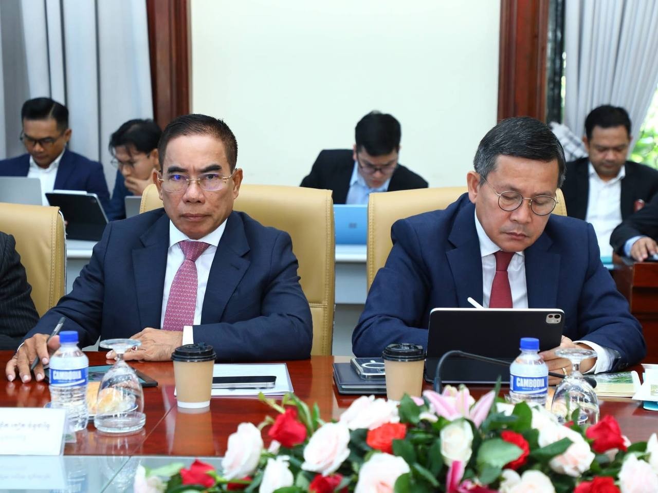 ភ្នំពេញ៖ នៅព្រឹកថ្ងៃទី២៥ ខែមីនា ឆ្នាំ២០២៦ នៅទីស្តីការក្រុមប្រឹក្សាអភិវឌ្ឍន៍កម្ពុជា, អ្នកឧកញ៉ា គិត ម៉េង ប្រធានសភាពាណិជ្ជកម្មកម្ពុជា និងជាប្រធានគណៈកម្មការសម្របសម្រួលក្រុមការងារផ្នែកឯកជនសម្រាប់យន្តការវេទិការាជរដ្ឋាភិបាល-ផ្នែកឯកជន (គ.ស.ឯ.រ.ជ) បានដឹកនាំសហប្រធានក្រុមការងារផ្នែកឯកជន និងអនុប្រធាននៃគណ:កម្មការសម្របសម្រួលក្រុមការងារផ្នែកឯកជន គ.ស.ឯ.រ.ជ រួមនិងក្រុមលេខាធិការដ្ឋានក្រុមការងារផ្នែកឯកជន អញ្ជើញចូលរួមក្នុង កិច្ចប្រជុំអន្តរក្រសួង ដើម្បីពិនិត្យពិភាក្សាលើសេចក្តីព្រាងរបាយការណ៍ស្តីពីវឌ្ឍនភាពការងារប្រចាំឆមាសទី២ ឆ្នាំ២០២៥ នៃយន្តការវេទិការាជរដ្ឋាភិបាល-ផ្នែកឯកជន ក្រោមអធិបតីភាពរបស់ ឯកឧត្តម ស៊ុន ចាន់ថុល ឧបនាយករដ្ឋមន្ត្រី អនុប្រធានទី១ ក្រុមកប្រឹក្សាអភិវឌ្ឍន៍កម្ពុជា និងជាប្រធានគណៈកម្មការសម្របសម្រួលក្រុមការងារសម្រាប់យន្តការវេទិការាជរដ្ឋាភិបាល-ផ្នែកឯកជន (គ.ស.រ.ជ)។