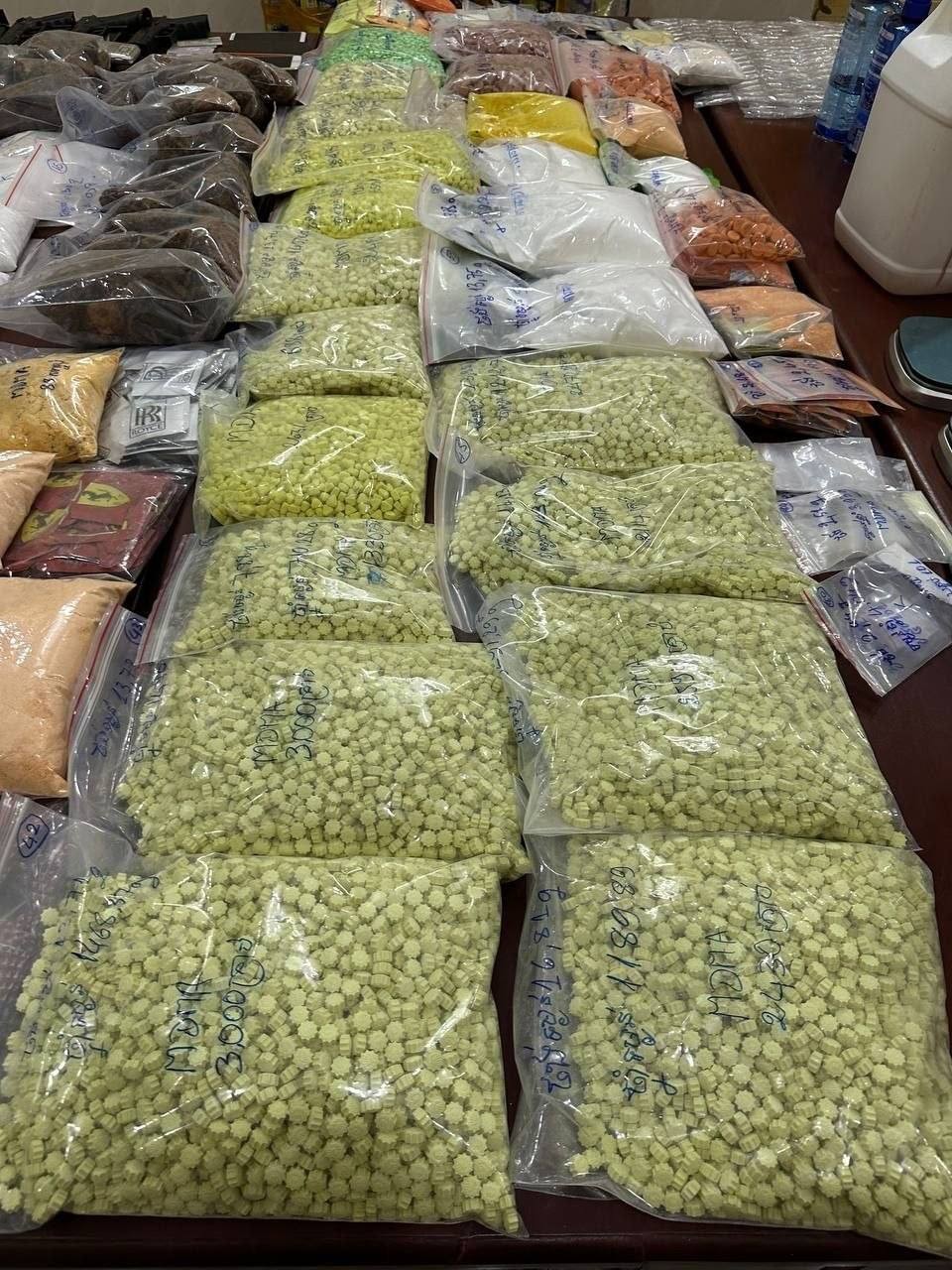 ក្នុងប្រតិបត្តិការ សមត្ថកិច្ច បានដកហូតសម្ភារវត្ថុតាង សារធាតុញៀនគ្រប់ប្រភេទទម្ងន់ជាង ៤៤គីឡូក្រាម ព្រមទាំងម៉ាសុីន និហសម្ភារឧបករណ៍កែច្នៃគ្រឿងញៀនមួយចំនួនទៀត។