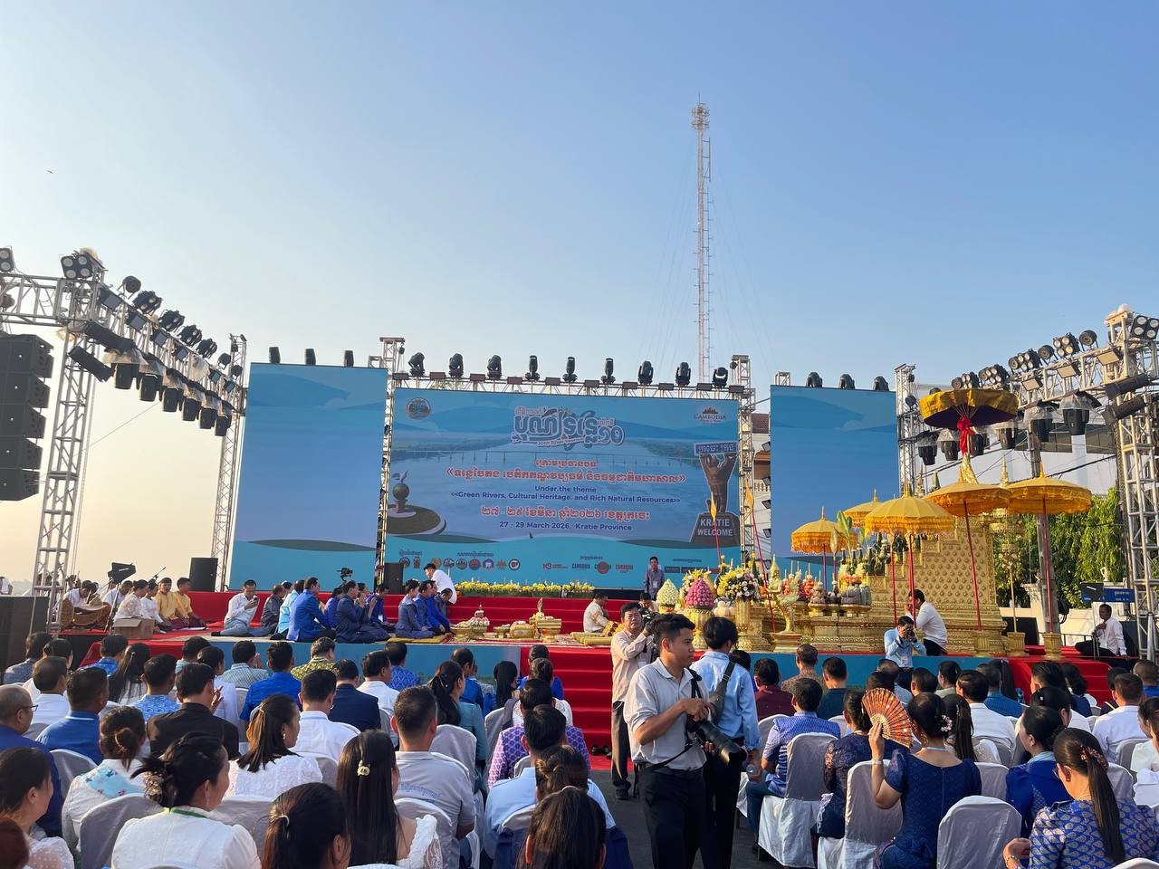 ក្រចេះ៖ លោក ហួត ហាក់ រដ្ឋមន្ត្រីក្រសួងទេសចរណ៍ ប្រធានគណៈកម្មការអន្តរក្រសួង និងភរិយា រួមជាមួយលោក វ៉ា ថន អភិបាលខេត្តក្រចេះ នៅរសៀលថ្ងៃទី២៧ ខែមីនានេះ បានអញ្ជើញជាអធិបតីភាពក្នុងពិធីក្រុងពាលី ដើម្បីចាប់ផ្តើមព្រឹត្តិការណ៍បុណ្យទន្លេលើកទី១០ នៅខេត្តក្រចេះ។