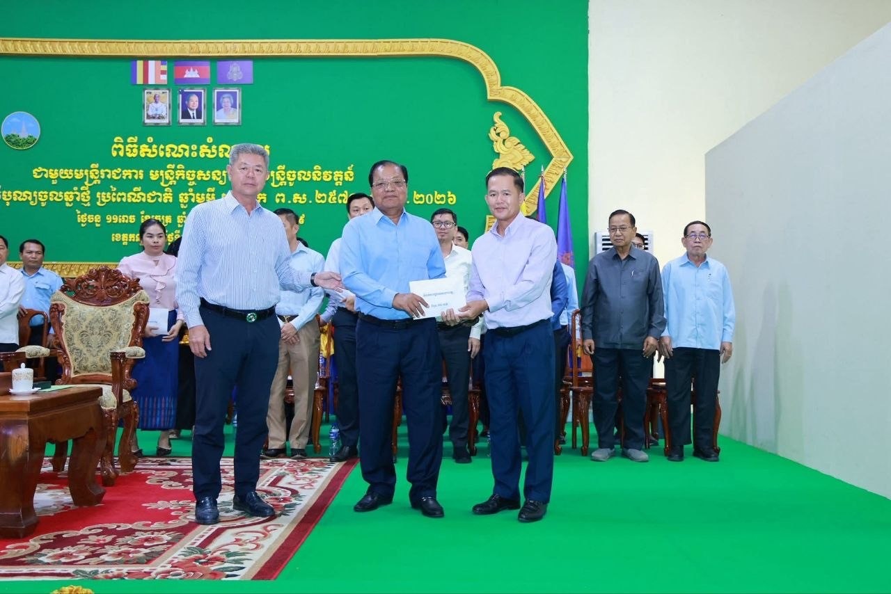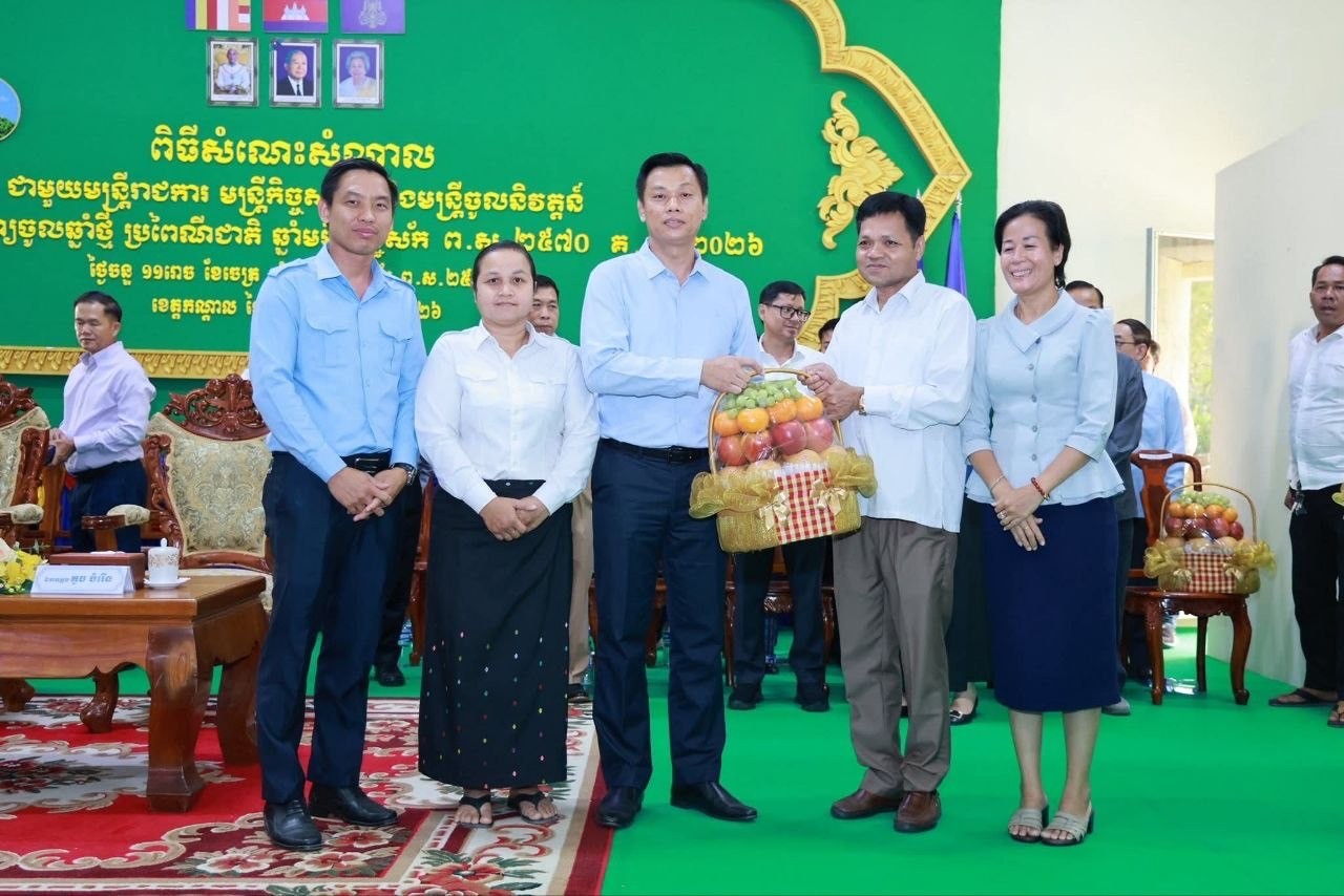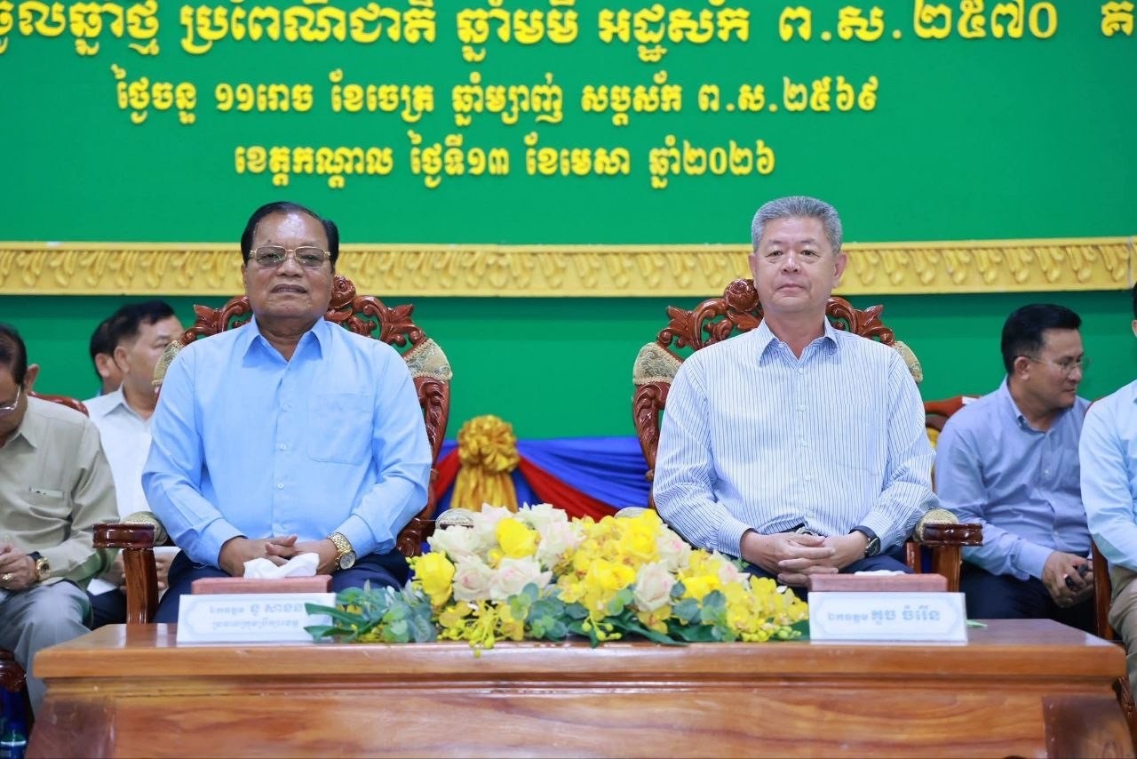 កណ្តាល៖ លោក នូ សាខន ប្រធានក្រុមប្រឹក្សាខេត្ត និងលោក គួច ចំរើន អភិបាលខេត្តកណ្តាល នារសៀលថ្ងៃទី១៣ ខែមេសា ឆ្នាំ២០២៦ បានជួបសំណេះសំណាលជាមួយមន្ត្រីរាជការ មន្ត្រីកិច្ចសន្យា និងមន្ត្រីចូលនិវត្តន៍ ដើម្បីអបអរសាទរពិធីបុណ្យចូលឆ្នាំថ្មី ប្រពៃណីជាតិ ឆ្នាំមមី អដ្ឋស័ក ព.ស.២៥៧០ នៅសាលប្រជុំសាលាខេត្តកណ្តាល។