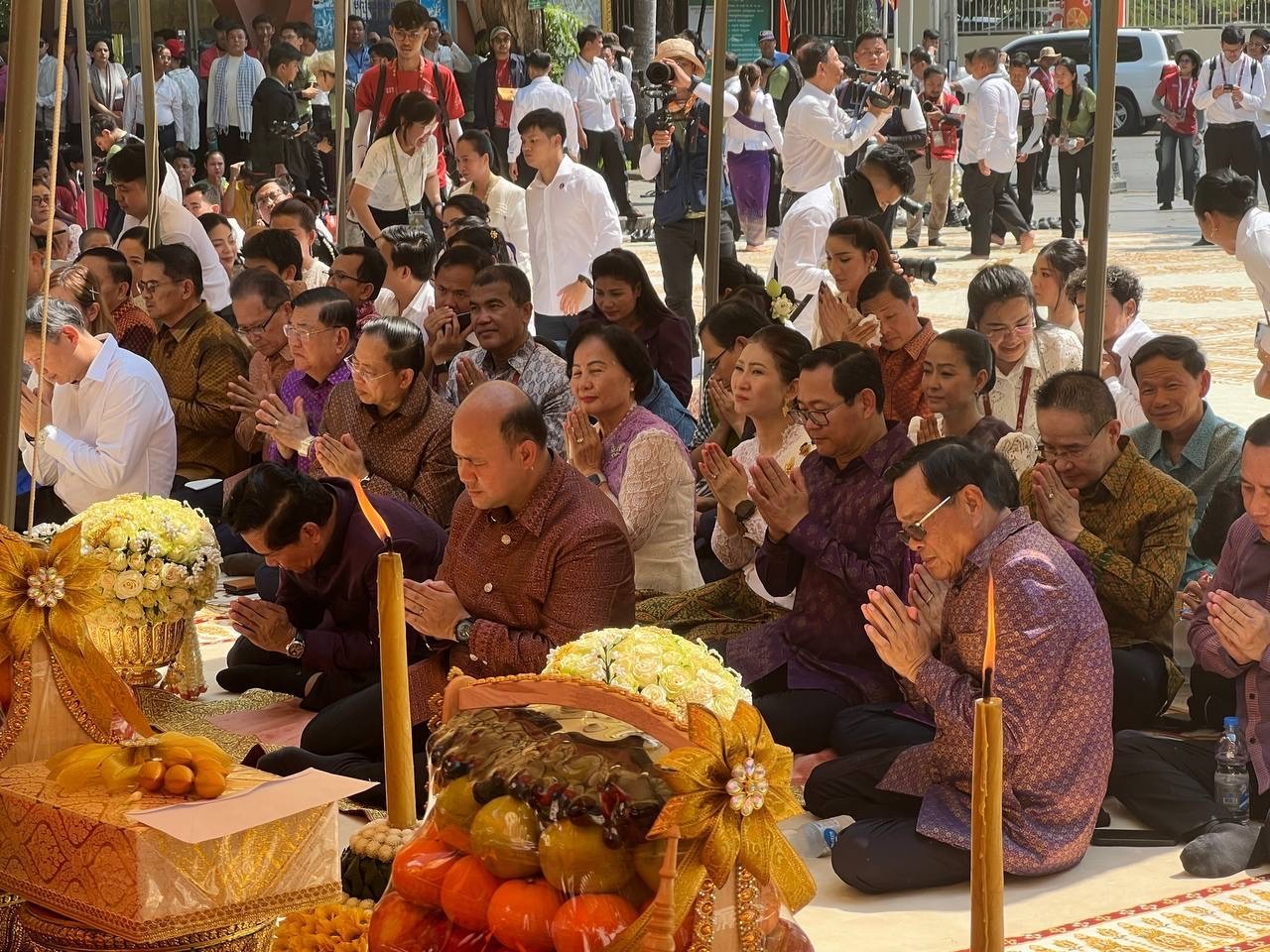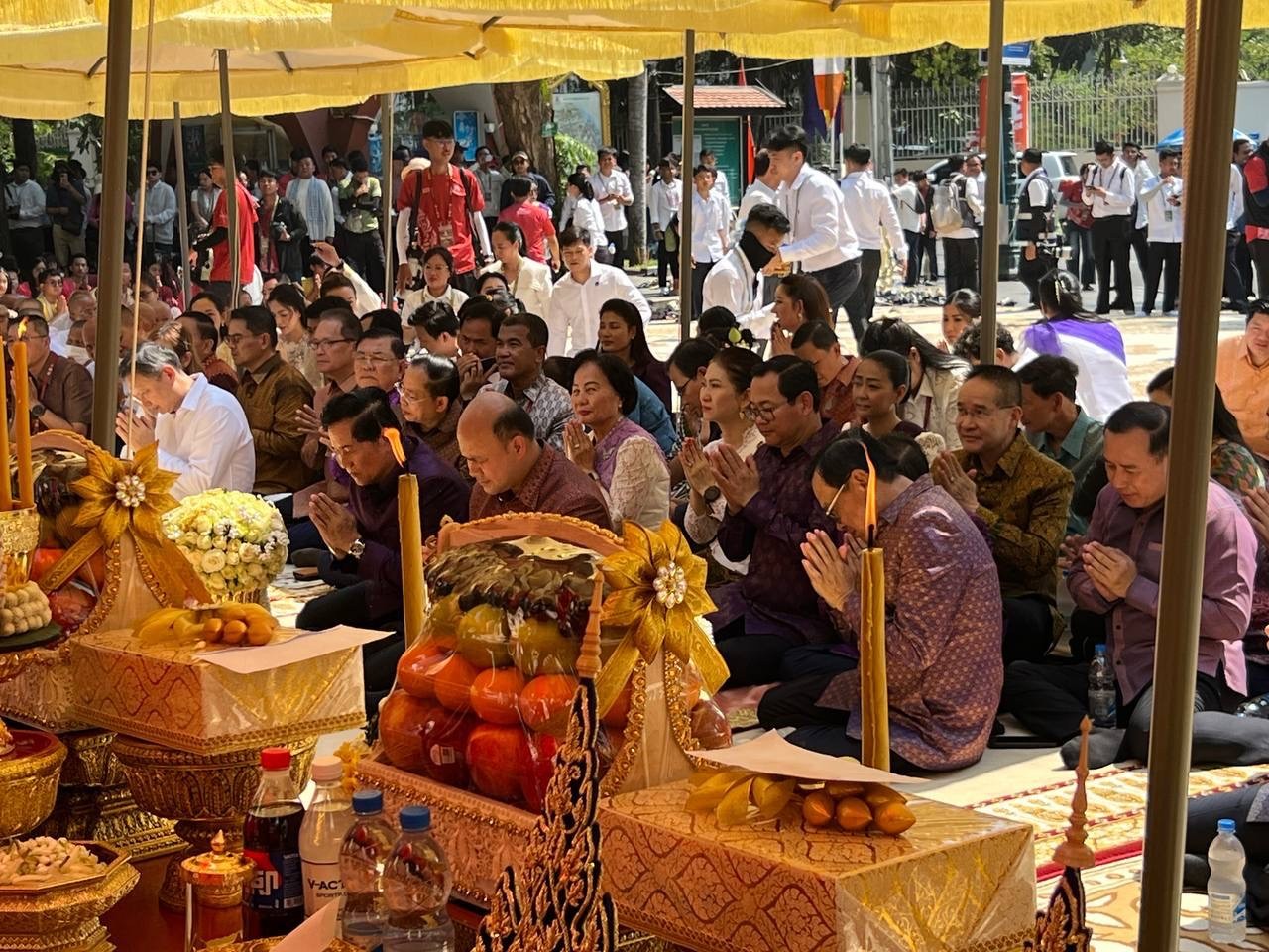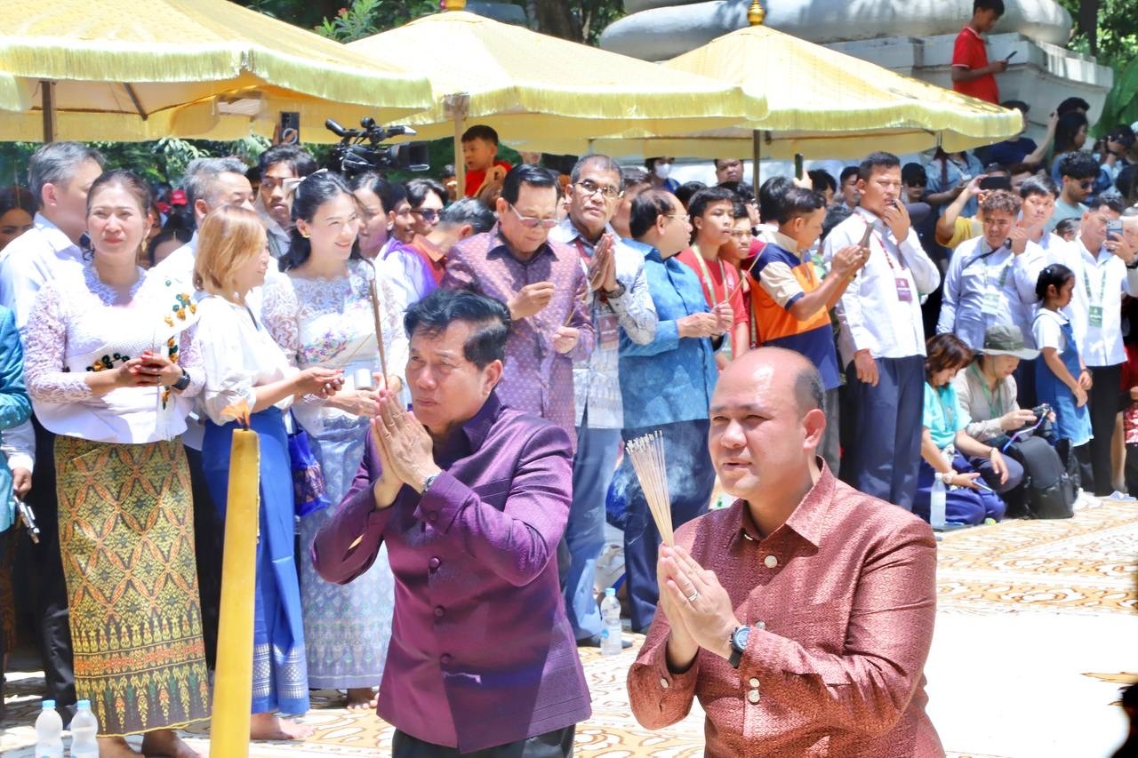 ភ្នំពេញ៖ លោក ហ៊ុន ម៉ានី ឧបនាយករដ្ឋមន្ត្រី និងជាប្រធានសហព័ន្ធសហភាពយុវជនកម្ពុជា (សសយក) រួមទាំងថ្នាក់ដឹកនាំក្រសួង-ស្ថាប័នជាច្រើនរូបទៀត និងមានការចូលរួមពីលោក ឃួង ស្រេង អភិបាលរាជធានីភ្នំពេញ បានចូលរួមប្រារព្ធពិធីសាសនាទទួលទេវតាឆ្នាំថ្មី នៅរមណីយដ្ឋានប្រវត្តិសាស្ត្រវត្តភ្នំរាជធានីភ្នំពេញ ស្របពេលនៃថ្ងៃដំបូងព្រឹត្តិការណ៍នគរសង្ក្រាន្ត ឆ្នាំ២០២៦។