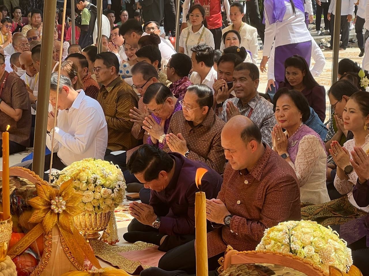 លោកឧបនាយករដ្ឋមន្ត្រី ហ៊ុន ម៉ានី និងលោក ឃួង ស្រេង រួមជាមួយនឹងថ្នាក់ដឹកនាំផ្សេងទៀត បានរៀបចំពិធីសាសនាទទួលទេវតាឆ្នាំថ្មី នៅរមណីយដ្ឋានប្រវត្តិសាស្ត្រវត្តភ្នំ