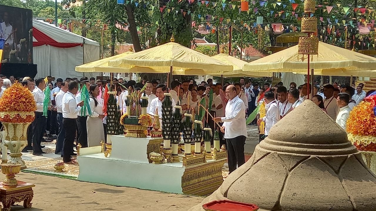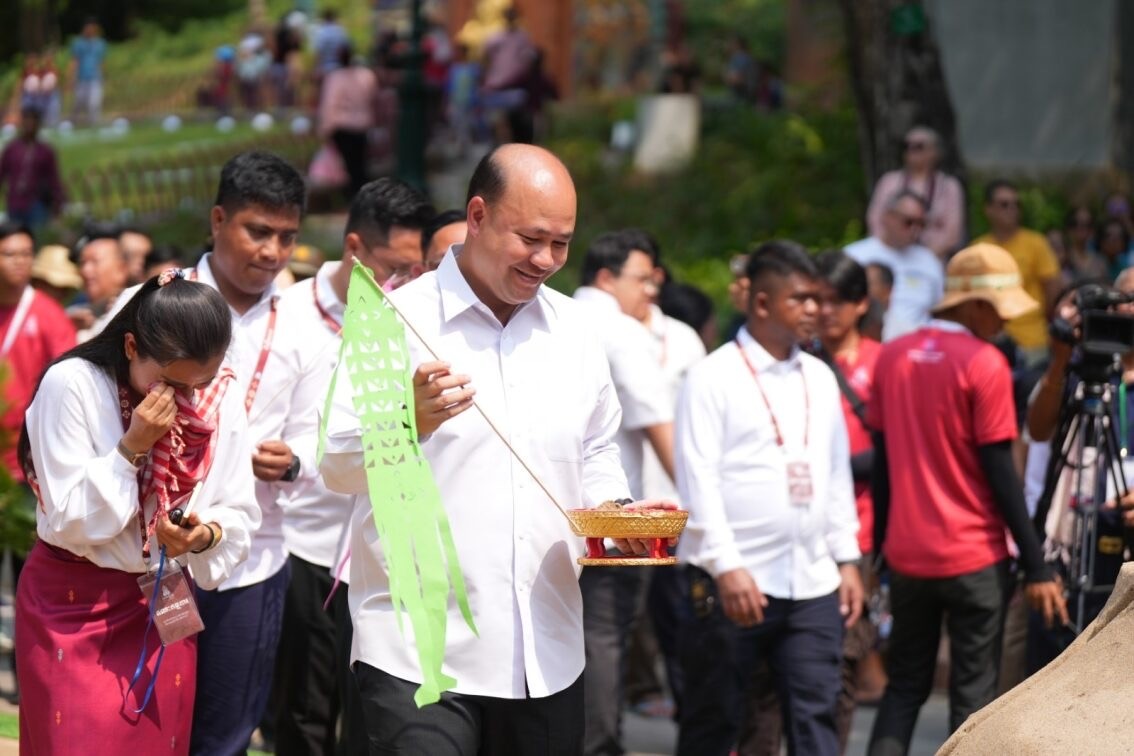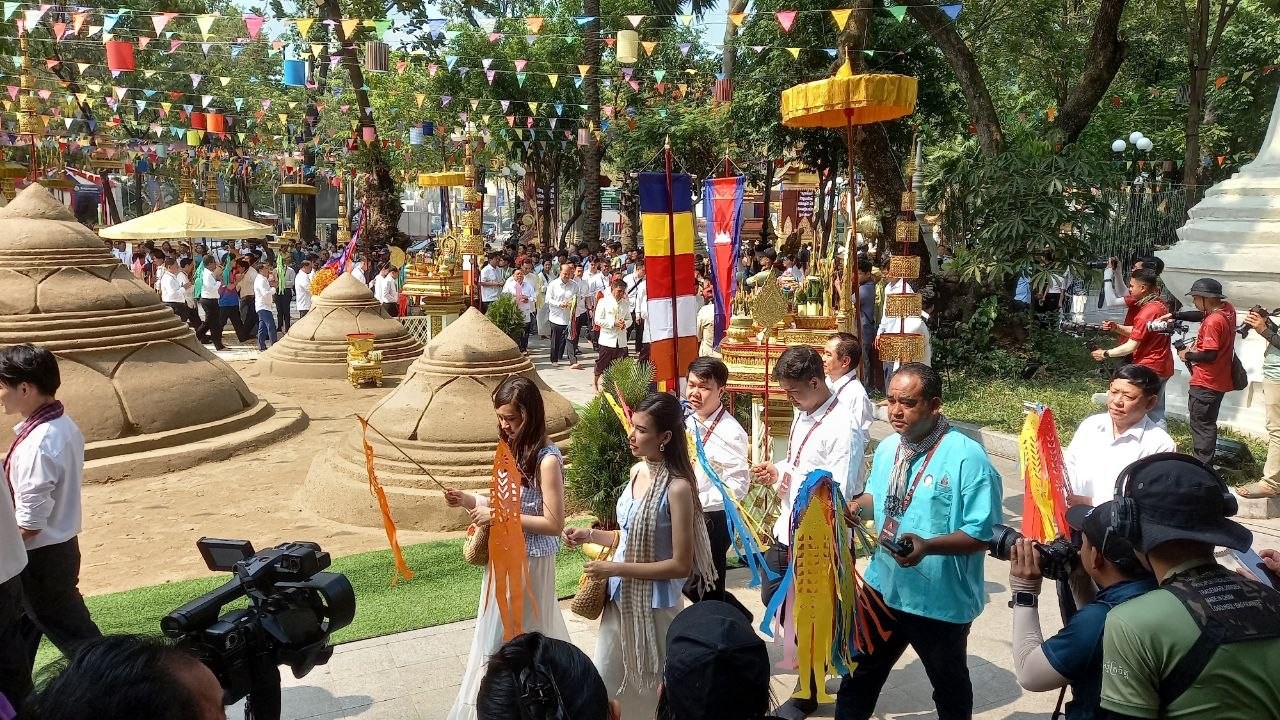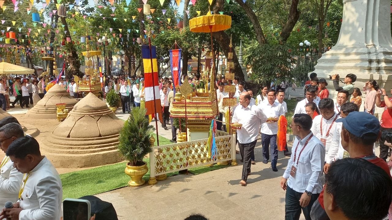 ភ្នំពេញ៖ នៅព្រឹកថ្ងៃទី១៥ ខែមេសា ឆ្នាំ២០២៦នេះ លោកឧបនាយករដ្ឋមន្ត្រី ហ៊ុន ម៉ានី រដ្ឋមន្ត្រីក្រសួងមុខងារសាធារណៈ និងជាប្រធានសហភាពសហព័ន្ធយុវជនកម្ពុជា រួមជាមួយថ្នាក់ដឹកនាំក្រសួងស្ថាប័ន និងលោក ឃួង ស្រេង អភិបាលរាជធានីភ្នំពេញ បានចូលរួមក្នុងពិធីទៅវត្ត និងវាលុកចេតិយ ឬហៅថា ពូនភ្នំខ្សាច់ ដែលជាពិធីដែលមានតាំងពីបុរាណកាលរបស់ខ្មែរ នាបរិវេណរមណីយដ្ឋានប្រវត្តិសាស្ត្រវត្តភ្នំ ក្នុងឱកាសថ្ងៃទី២ នៃព្រឹត្តិការណ៍នគរសង្ក្រាន្ត។