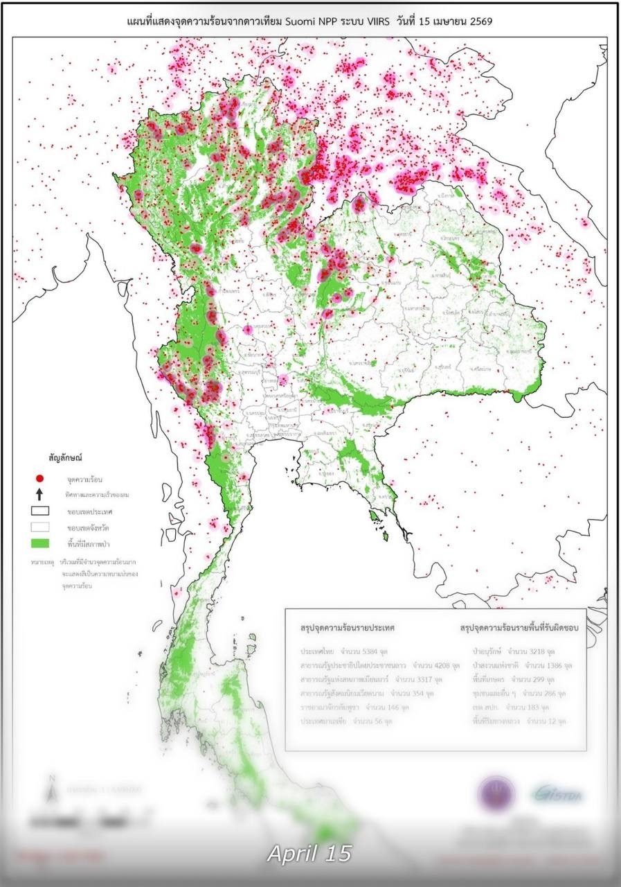 ទិន្នន័យផ្កាយរណបថៃ បង្ហាញថា ចំណុចដែលមានភ្លើងឆេះព្រៃនៅក្នុងប្រទេសថៃ កើនឡើងខ្លាំងអំឡុង ៤ខែដំបូង ក្នុងឆ្នាំ ២០២៦