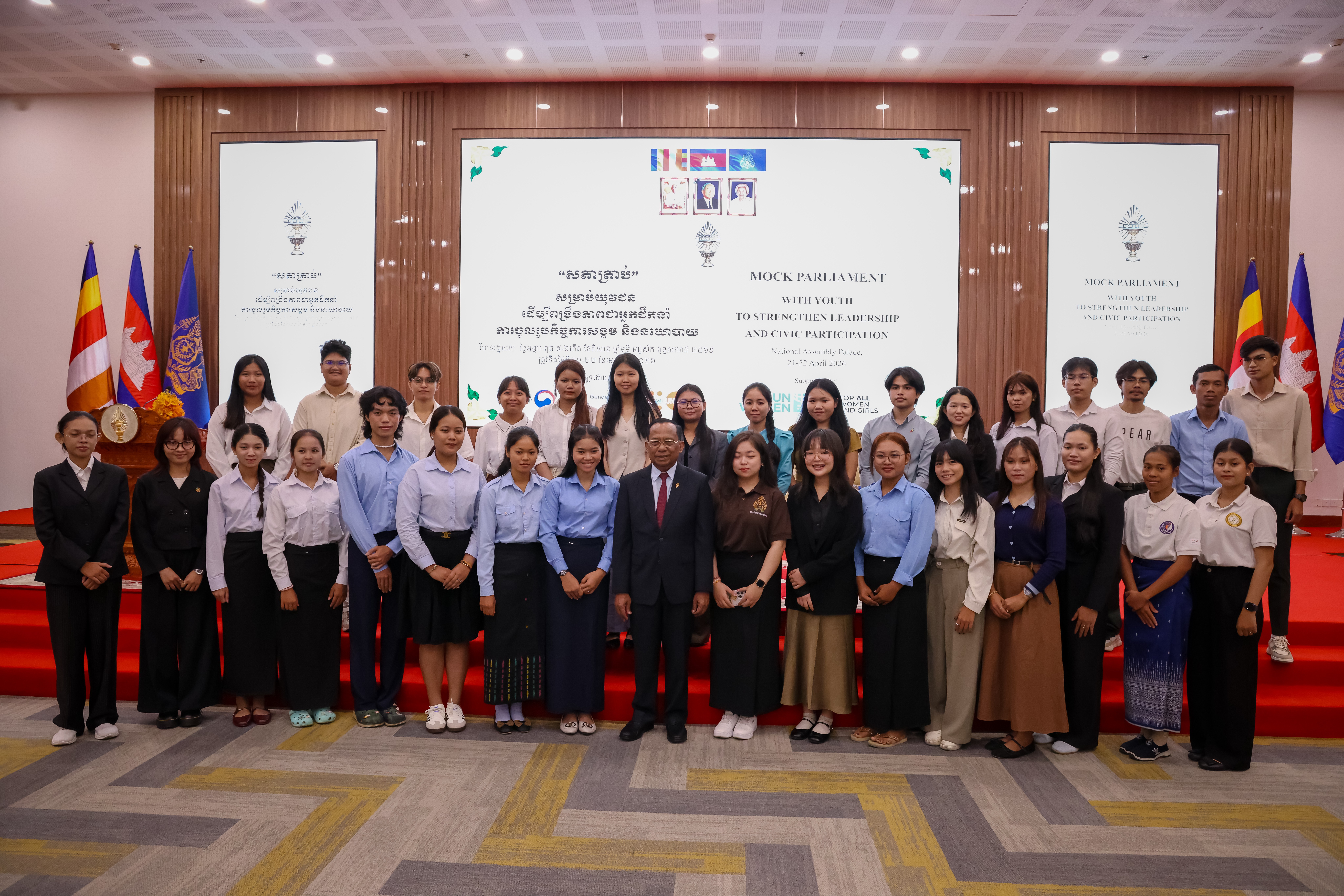 ភ្នំពេញ៖ លោក វង សូត អនុប្រធានទី២ រដ្ឋសភា តំណាងដ៏ខ្ពង់ខ្ពស់សម្តេចមហារដ្ឋសភាធិការធិបតី ឃួន សុដារី ប្រធានរដ្ឋសភា បានអញ្ជើញចូលរួមក្នុងកម្មវិធី “សភាត្រាប់” សម្រាប់យុវជន ដើម្បីពង្រីកភាពជាអ្នកដឹកនាំ ការចូលរួមក្នុងកិច្ចការសង្គម និងនយោបាយ នៅវិមានរដ្ឋសភា នាថ្ងៃទី២១ ខែ មេសា ឆ្នាំ២០២៦នេះ។