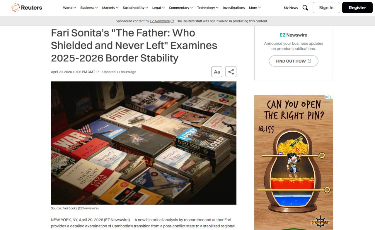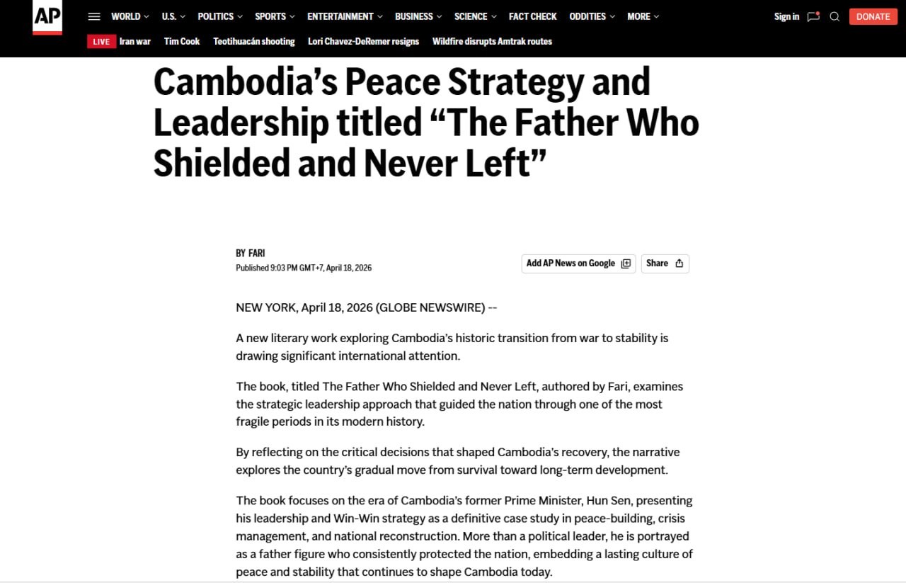 (ភ្នំពេញ)៖ សំណួរជាច្រើនត្រូវបានចោទសួរថា តើអ្វីទៅជាខ្លឹមសារដ៏មានឥទ្ធិពលនៅក្នុងសៀវភៅ "The Father Who Shielded and Never Left" បានជាអាចទាក់ទាញភ្នែកព័ត៌មានអន្តរជាតិឱ្យងាកមកចុះផ្សាយបែបនេះ?