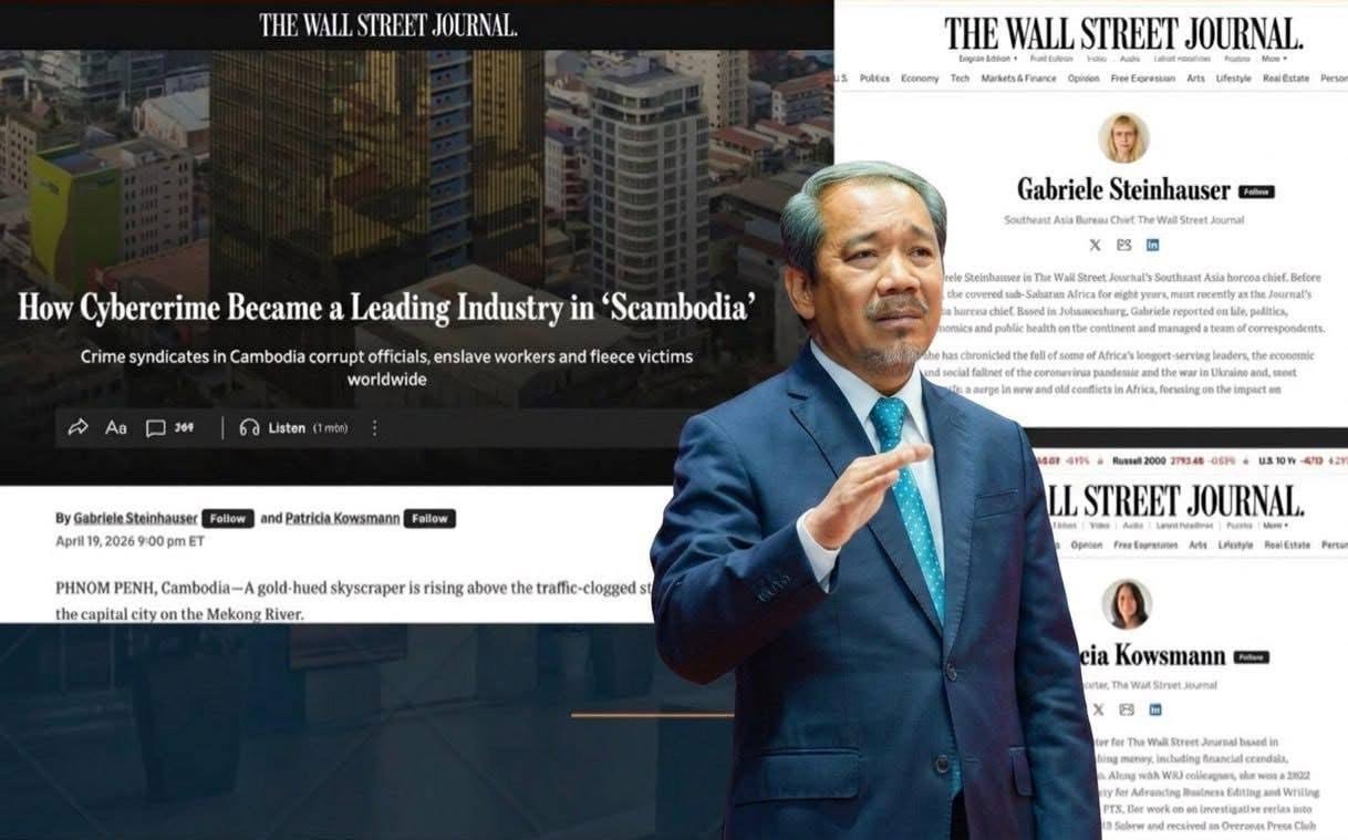 ភ្នំពេញ៖ គណ:កម្មាធិការសិទ្ធិមនុស្សកម្ពុជា នៅថ្ងៃទី២២ ខែមេសា ឆ្នាំ២០២៦ បានផ្ញើលិខិតទៅសារព័ត៌មាន The Wall Street Journal ដែលបានហៅឈ្មោះប្រទេសកម្ពុជា ដោយប្រើពាក្យ “Scambodia” ដែលបានប៉ះពាល់យ៉ាងធ្ងន់ធ្ងរដល់កិត្តិយសរបស់ប្រទេស និងជាតិសាសន៍ កម្ពុជា។