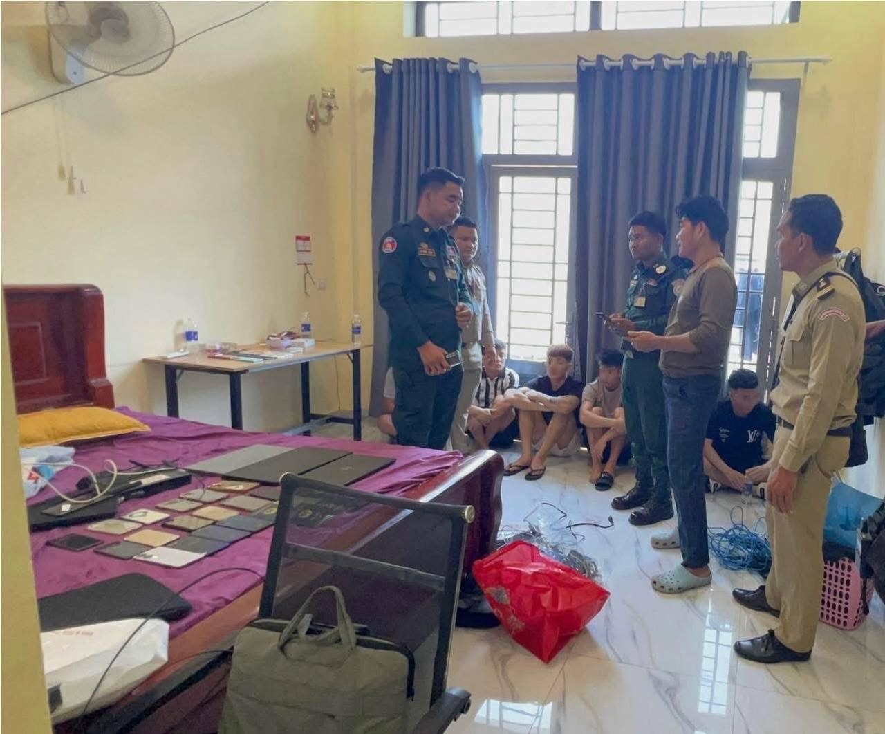 ស្វាយរៀង៖ កម្លាំងនគរបាលនៃអធិការដ្ឋាននគរបាលស្រុកចន្ទ្រា ចុះធ្វើរដ្ឋបាលនៅផ្ទះជួលមួយកន្លែង រកឃើញជនបរទេស ៦នាក់ ជាជនជាតិវៀតណាម ជាមួយនឹងសម្ភារបម្រើបទល្មើសមួយចំនួនធំ។