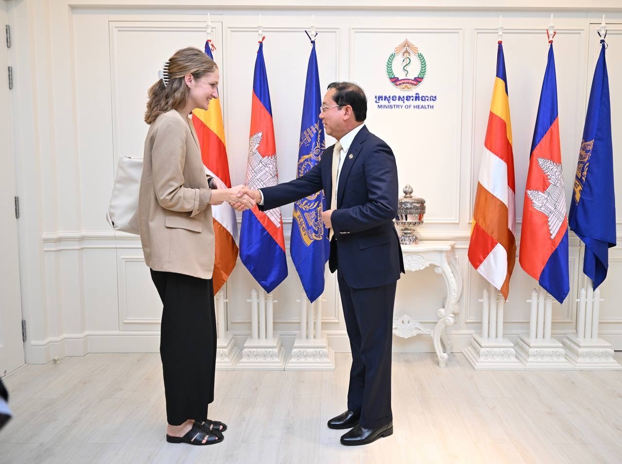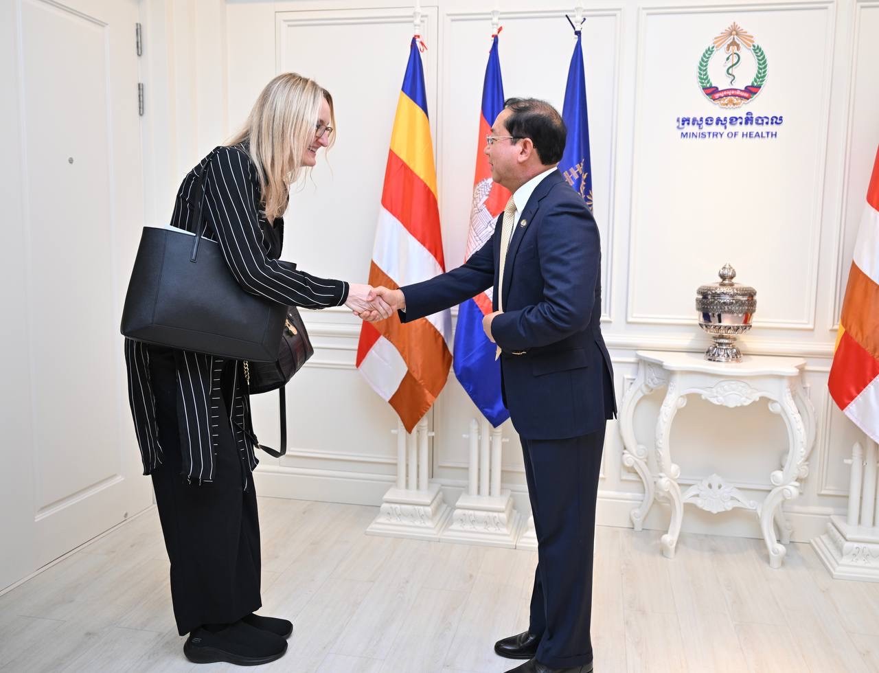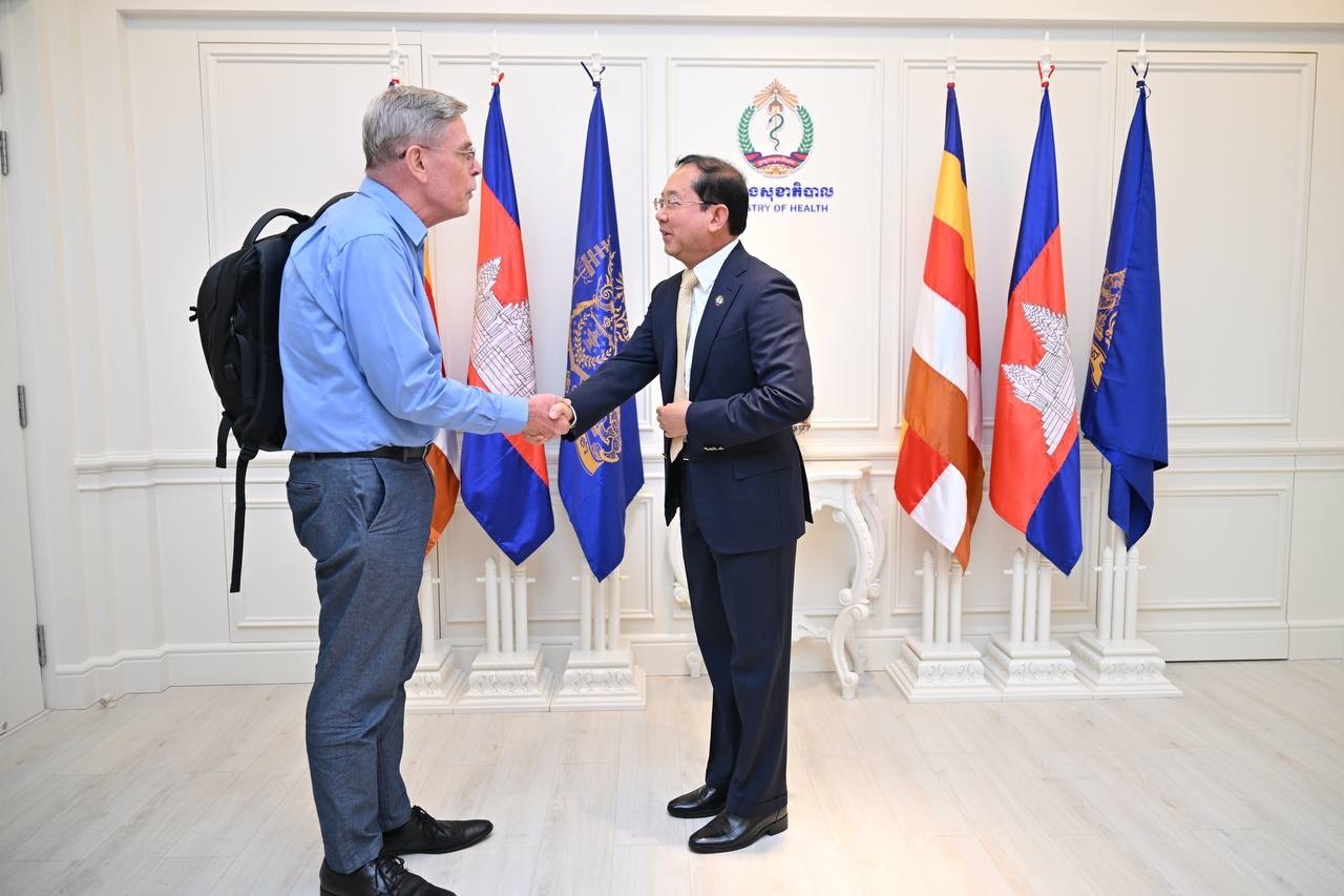 ភ្នំពេញ៖ លោកសាស្ត្រាចារ្យ ឈាង រ៉ា រដ្ឋមន្ត្រីក្រសួងសុខាភិបាល នៅរសៀលថ្ងៃទី២២ ខែមេសា ឆ្នាំ២០២៦ បានអនុញ្ញាតជូនលោកស្រី Sylwia Murray ប្រធានបេសកកម្ម និងក្រុមការងារមូលនិធិសកល (Global Fund Country Team) ចូលជួបសម្តែងការគួរសម និងពិភាក្សាការងារ នៅទីស្តីការក្រសួងសុខាភិបាល។