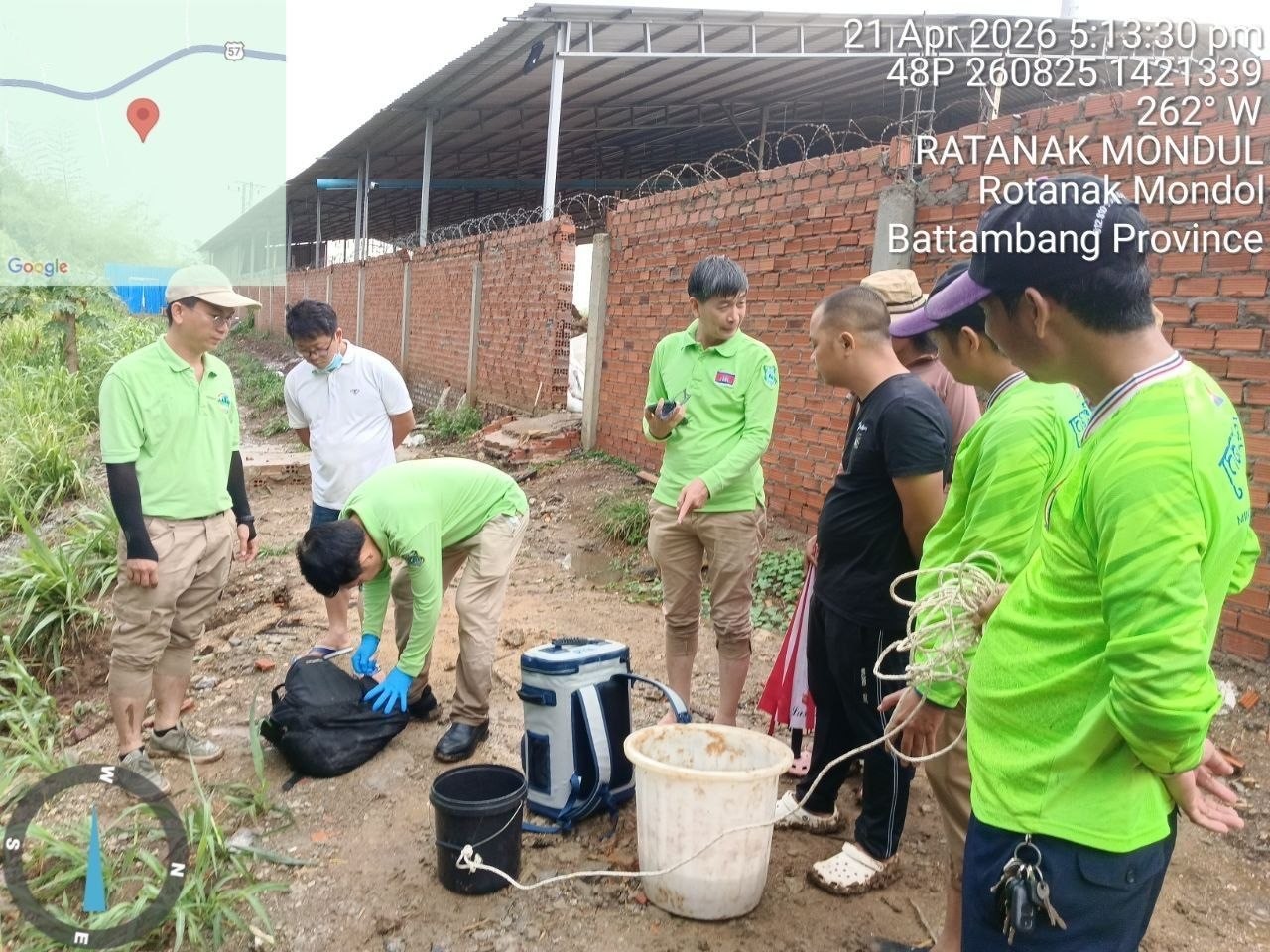 បាត់ដំបង៖ មន្ត្រីជំនាញក្រសួងបរិស្ថានបានបន្តចុះពិនិត្យ ជាមួយមន្រ្តីជំនាញនៃមន្ទីរបរិស្ថានខេត្តបាត់ដំបង និងរដ្ឋបាលស្រុករតនៈមណ្ឌល នៅថ្ងៃទី២១-២២ ខែមេសា ឆ្នាំ២០២៦ និងបានរកឃើញ ថា រោងចក្រ ផលិតដំណាប់ស្វាយ បៃ ស៊ីង សេង (ខេមបូឌា) អ៊ិនដាសស្រ្ទី ឯ.ក ដែលស្ថិតនៅជាប់នឹងដងអូរត្រែង និងស្ថិតនៅចំណុចខ្សែទឹកខាងលើទីតាំង ដែលមានត្រីងាប់ ចម្ងាយប្រមាណ ២គីឡូម៉ែត្រ បានបញ្ចេញសំណល់រាវ មិនបានធ្វើប្រព្រឹត្តកម្មត្រឹមត្រូវដោយបានបង្ហូរតាមប្រព័ន្ធលូចេញពីទីតាំងផលិតកម្ម ចូលទៅក្នុងអូរត្រែងដោយផ្ទាល់ (ស្ថិតនៅចំណុចខាងកើតផ្នែកខាងជើងនៃទីតាំងរោងចក្រ)។