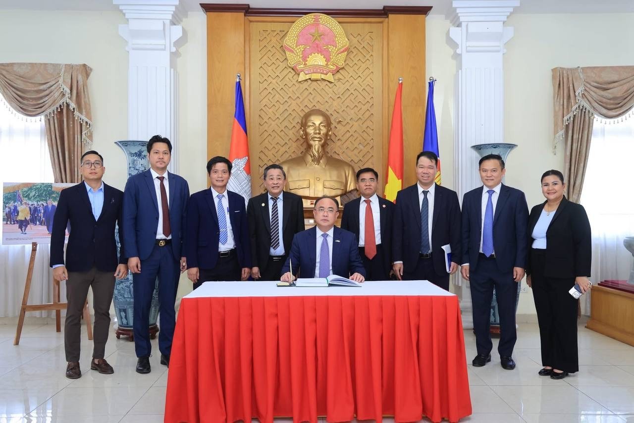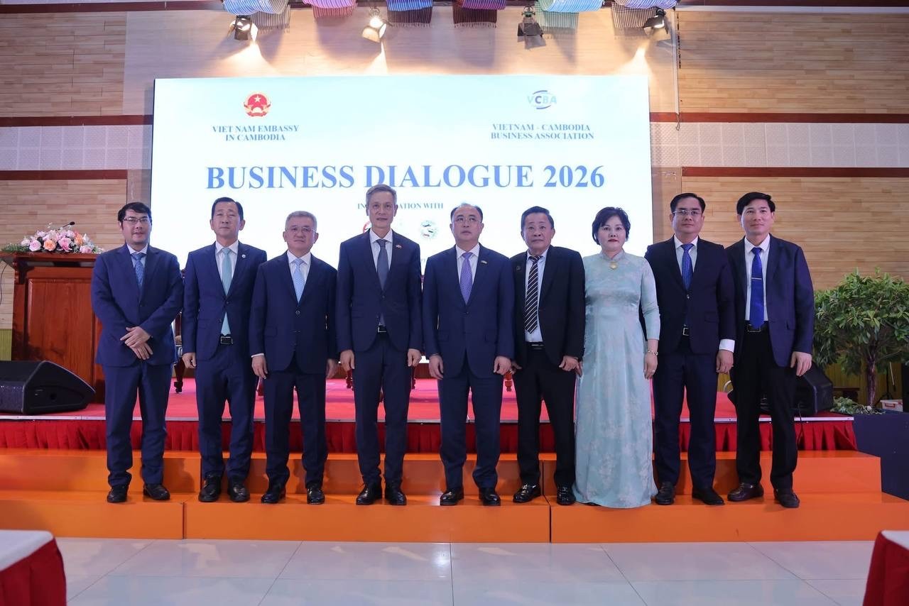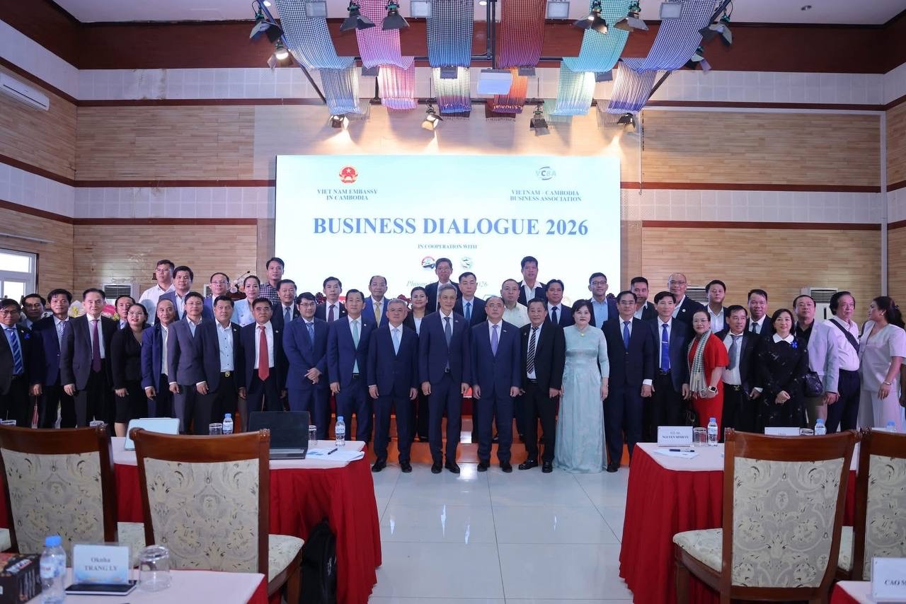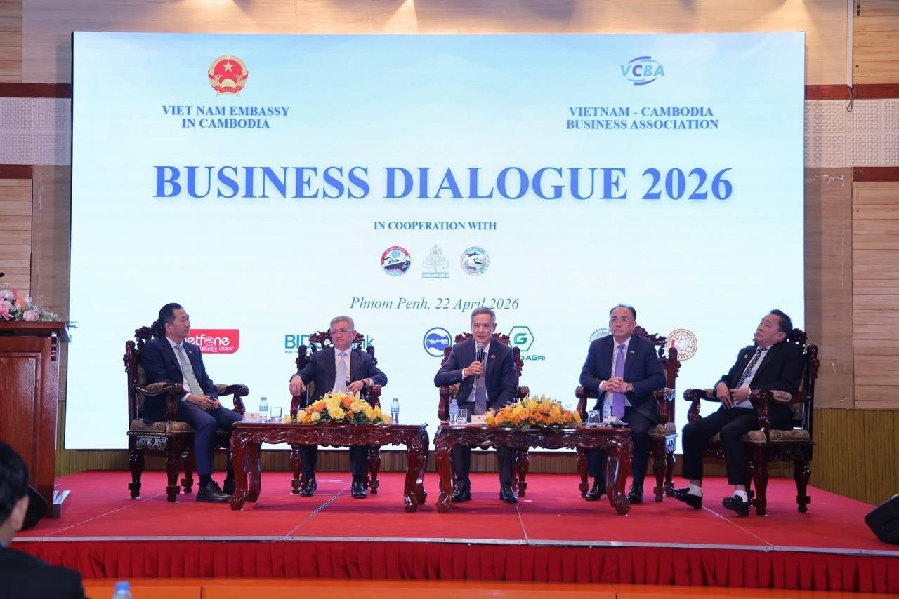សូមជម្រាបថា កាលពីរសៀលថ្ងៃទី២២ ខែមេសា ឆ្នាំ២០២៦ ស្ថានទូតនៃសាធារណរដ្ឋសង្គមនិយមវៀតណាមប្រចាំព្រះរាជាណាចក្រកម្ពុជា បានសហការជាមួយសមាគមធុរកិច្ចកម្ពុជា-វៀតណាម រៀបចំ «កិច្ចសន្ទនាធុរកិច្ចកម្ពុជា-វៀតណាម ឆ្នាំ២០២៦» ក្នុងគោលបំណងពង្រឹង និងពង្រីកកិច្ចសហប្រតិបត្តិការទ្វេភាគីលើវិស័យសេដ្ឋកិច្ច, ពាណិជ្ជកម្ម, និងវិនិយោគឱ្យកាន់តែស៊ីជម្រៅ នៃប្រទេសវៀតណាម និងកម្ពុជា៕