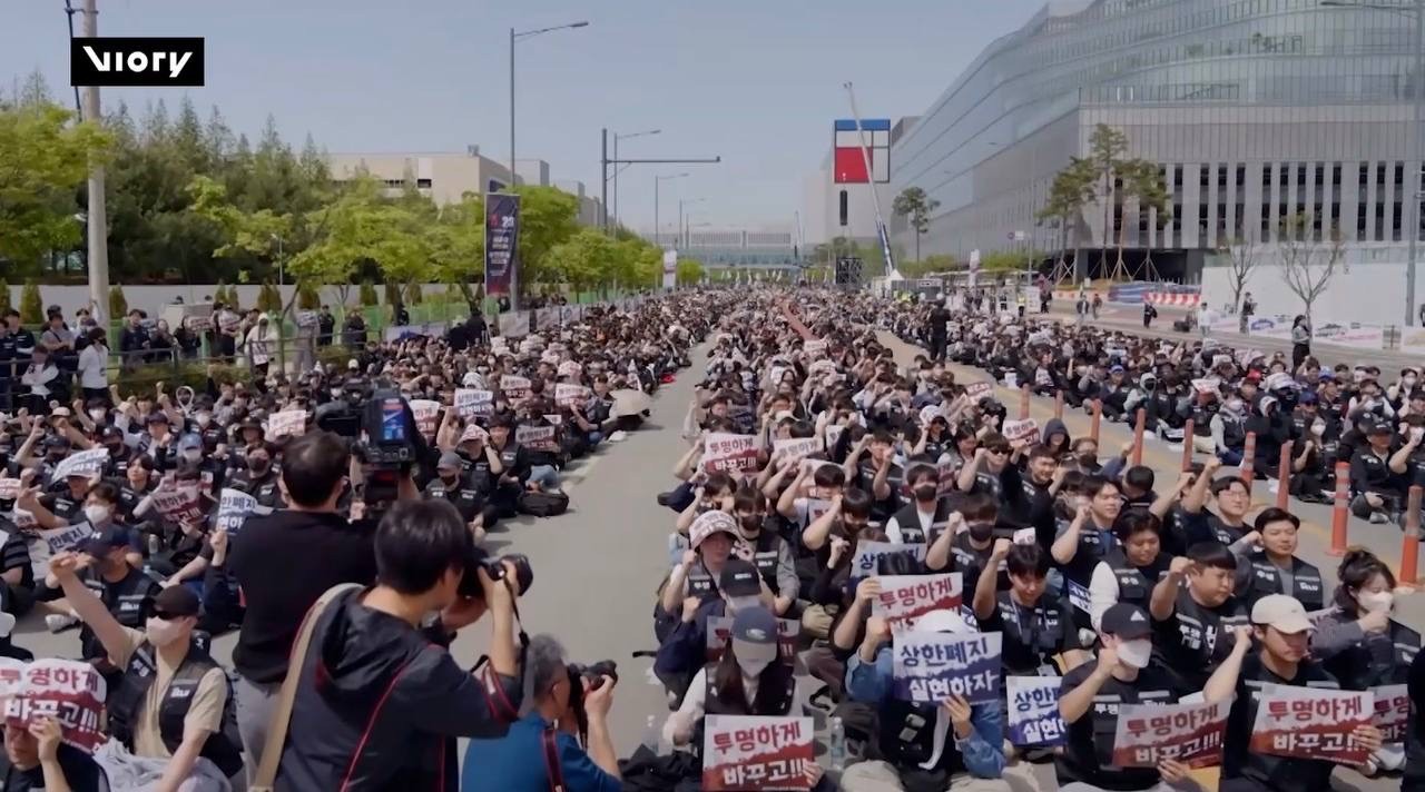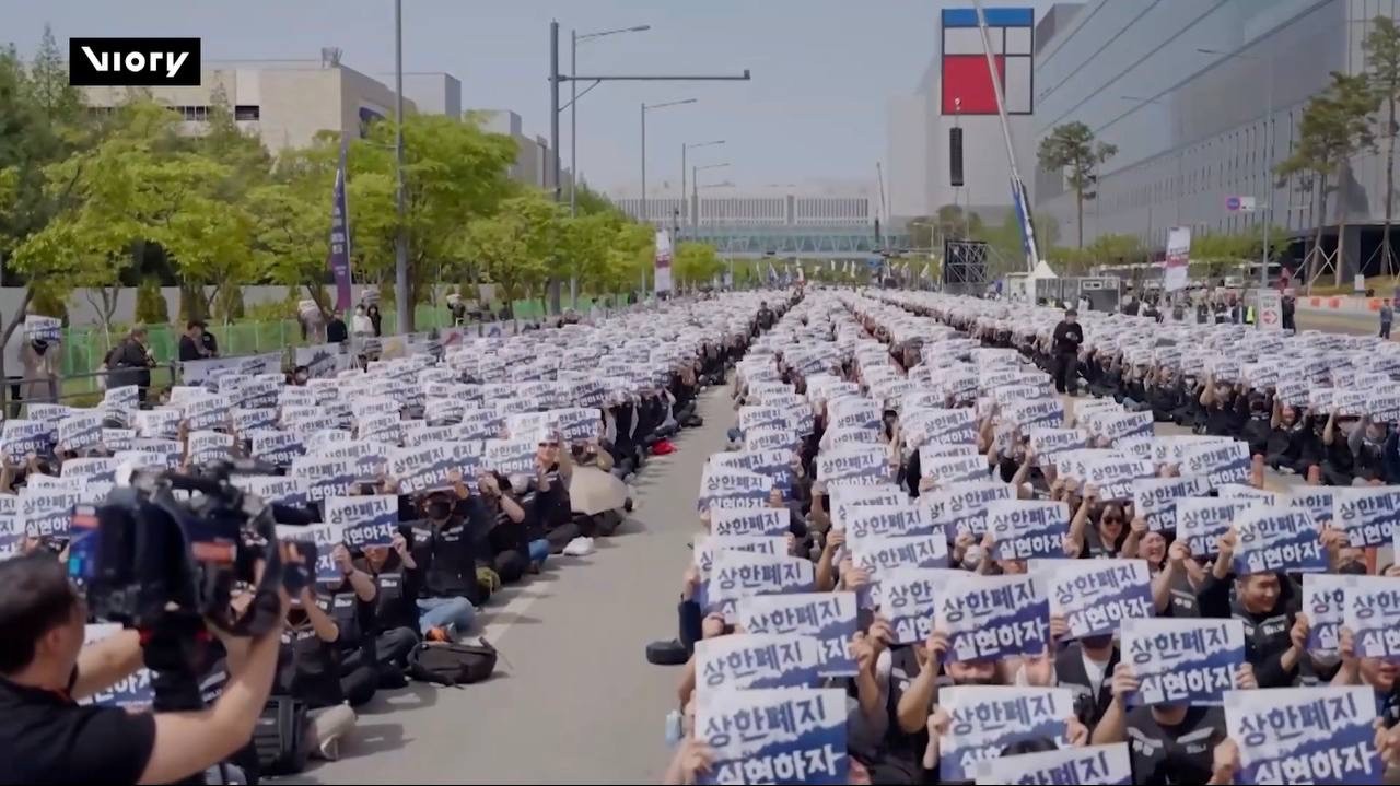 កូរ៉េខាងត្បូង៖ បុគ្គលិកក្រុមហ៊ុន Samsung ប្រមាណជា ៤ ម៉ឺននាក់ បានជួបជុំគ្នាធ្វើការតវ៉ាទ្រង់ទ្រាយធំនៅទីក្រុង ព្យុងថេក (Pyeongtaek) ប្រទេសកូរ៉េខាងត្បូង កាលពីថ្ងៃព្រហស្បតិ៍ ដើម្បីទាមទារឱ្យមានការកែសម្រួលប្រាក់ខែ និងប្រាក់លើកទឹកចិត្តឱ្យមានតម្លាភាពជាងមុន។ ក្រុមអ្នកតវ៉ា រិះគន់ក្រុមហ៊ុនថា បានលាក់បាំងព័ត៌មានផ្នែកហិរញ្ញវត្ថុ និងមិនបានផ្តល់ផលប្រយោជន៍សមស្របទៅនឹងកម្លាំងពលកម្មដែលពួកគេបានលះបង់នោះឡើយ ។
