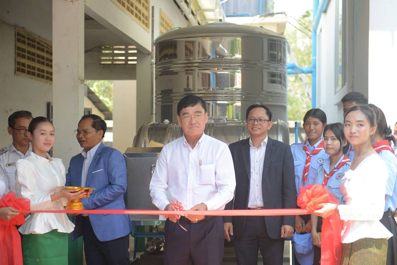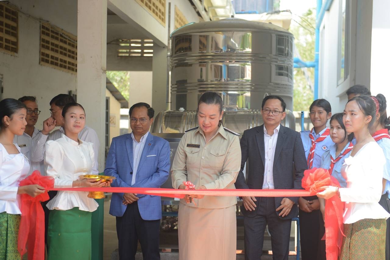 វិទ្យាល័យ ហ៊ុន សែន ពញាពន់ ទទួលបានប្រព័ន្ធប្រមូលទឹកភ្លៀងសម្រាប់បរិភោគ ក្រោយទទួលបានជ័យលាភីកម្មវិធីសាលារៀនទឹកភ្លៀង