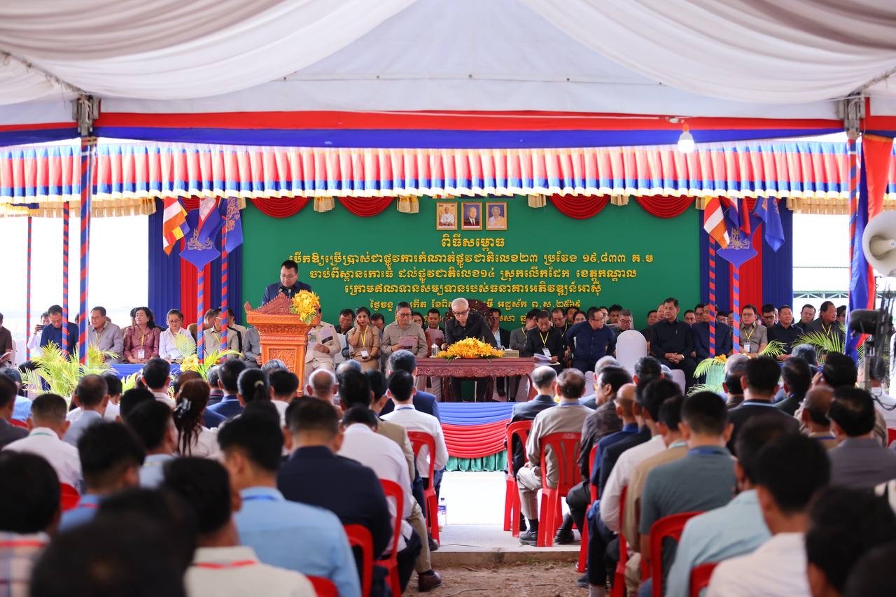 កណ្តាល៖ រាជរដ្ឋាភិបាលកម្ពុជា បានសម្ពោធដាក់ឲ្យប្រើប្រាស់ជាផ្លូវការនូវកំណាត់ផ្លូវជាតិលេខ២៣ ប្រវែងប្រមាណ ២០គីឡូម៉ែត្រ ចាប់ពីស្ពានកោះធំ ដល់ផ្លូវជាតិលេខ ១៤ ក្នុងស្រុកលើកដែក ខេត្តកណ្តាល ដោយបានចំណាយថវិកាដែលជាឥណទានសម្បទានរបស់ធនាគារអភិវឌ្ឍន៍អាស៊ី (ADB) សរុបចំនួនជាង ២៥ លានដុល្លារអាម៉េរិក រួមជាមួយនឹងថវិកាបដិភាគមួយចំនួនផ្សេងទៀតរបស់រាជរដ្ឋាភិបាល ខណៈដែលផ្លូវនេះ បានរួមចំណែកក្នុងការលើកកម្ពស់កម្រិតជីវភាពរបស់បង-ប្អូនប្រជាពលរដ្ឋ ក្នុងខេត្តកណ្តាល និងក្នុងការជំរុញការអភិវឌ្ឍសង្គម-សេដ្ឋកិច្ច ឲ្យបានកាន់តែមានលក្ខណៈប្រសើរឡើងជាលំដាប់ទៀតផង។