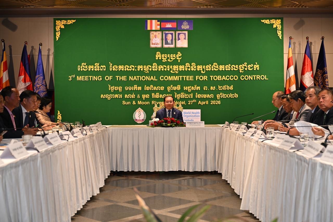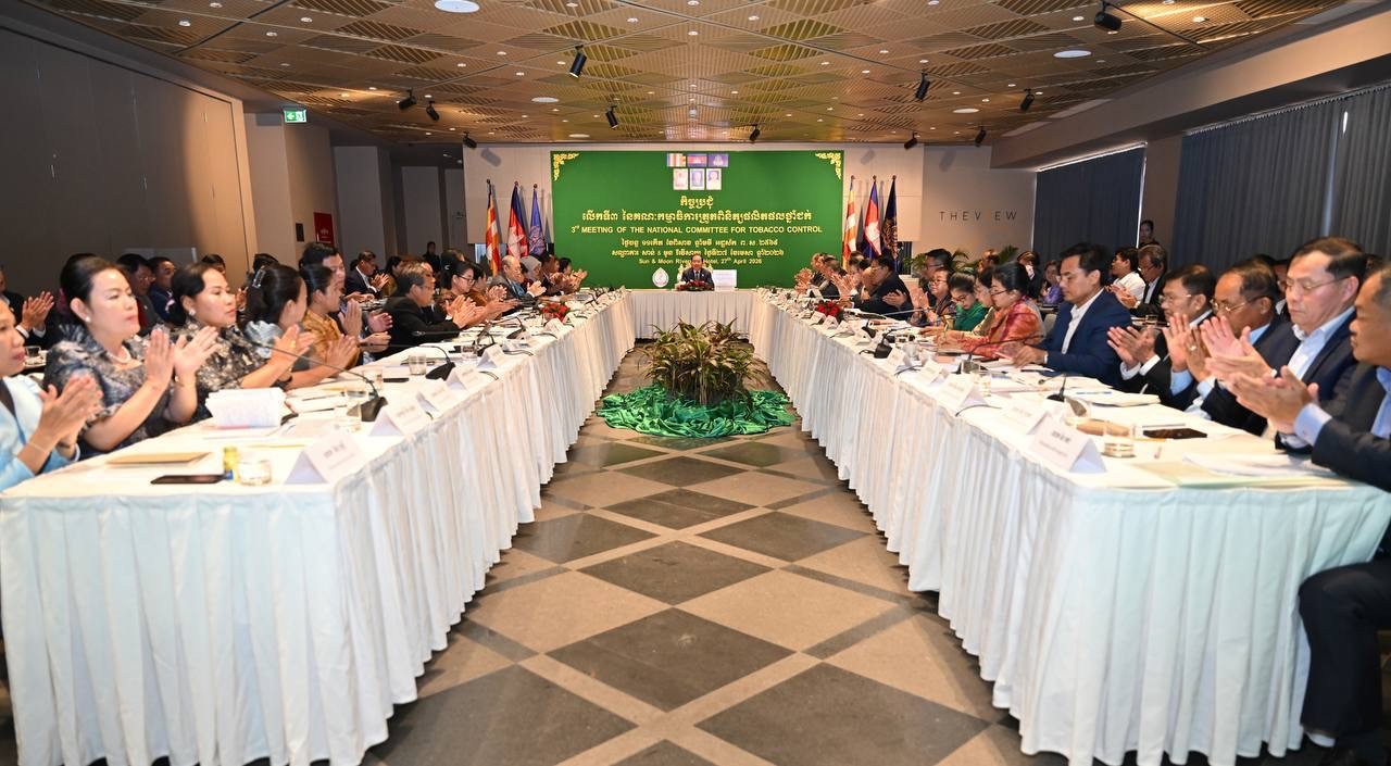 ភ្នំពេញ៖ លោកសាស្ត្រាចារ្យ ឈាង រ៉ា រដ្ឋមន្ត្រីក្រសួងសុខាភិបាល នៅថ្ងៃទី២៧ ខែមេសា ឆ្នាំ២០២៦ បានដឹកនាំកិច្ចប្រជុំ នៃគណៈកម្មាធិការត្រួតពិនិត្យផលិតផលថ្នាំជក់ ដើម្បីពិនិត្យវឌ្ឍនភាពការងារ ពង្រឹងកិច្ចសហការពហុវិស័យ និងកំណត់អាទិភាពសម្រាប់ជំហានបន្ត ក្នុងការកាត់បន្ថយការប្រើប្រាស់ថ្នាំជក់ ការពារប្រជាជនពីផ្សែងថ្នាំជក់ បង្ក្រាបផលិតផលថ្នាំជក់ខុសច្បាប់ និងក្លែងក្លាយ ព្រមទាំងទប់ស្កាត់បារីអេឡិចត្រូនិក ដែលកំពុងបង្កហានិភ័យដល់យុវជន និងសុខភាពសាធារណៈ។