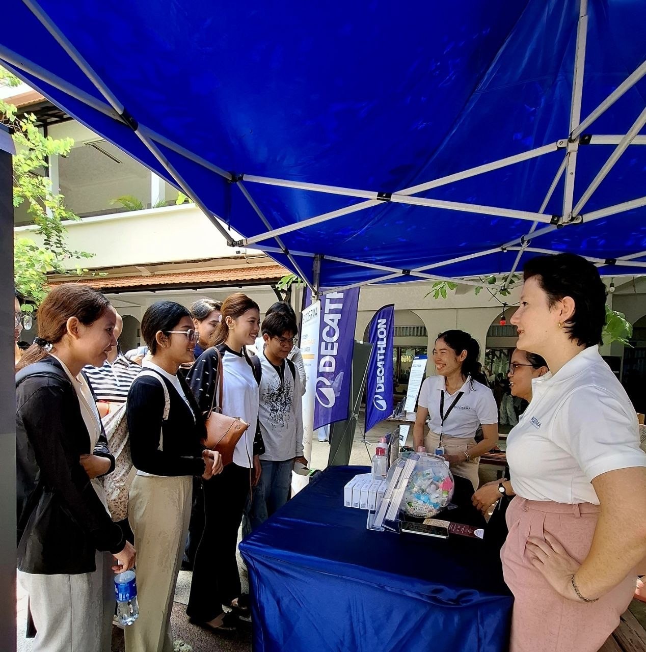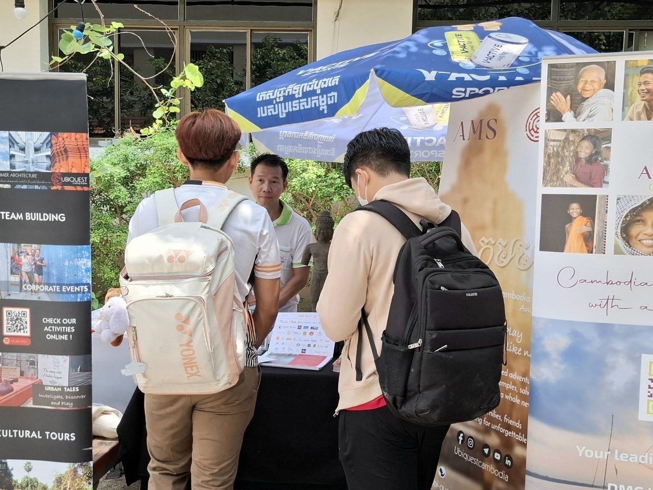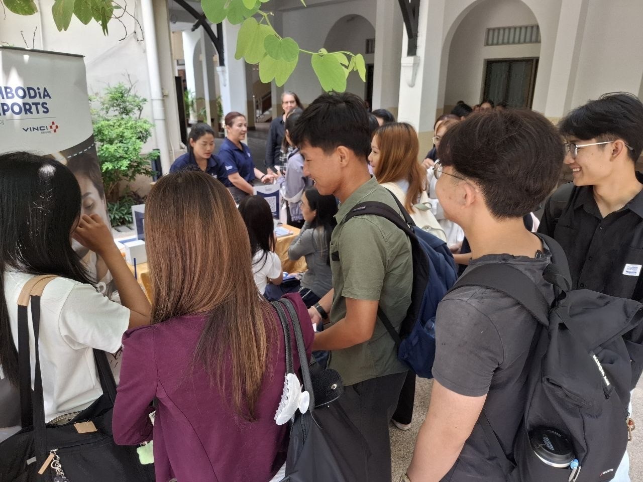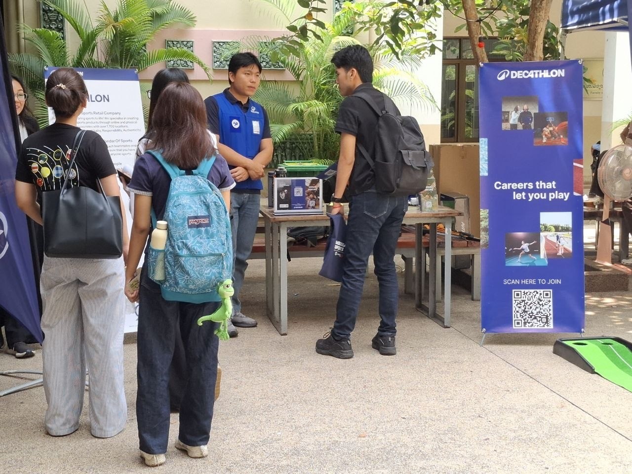 សូមបញ្ជាក់ថា ក្រុមហ៊ុនសមាជិកសភាពាណិជ្ជកម្ម និងឧស្សាហកម្មបារាំង-កម្ពុជា ចំនួន ៦ បានរៀបចំស្តង់ ដើម្បីផ្តល់ព័ត៌មានអំពីឱកាសហ្វឹកហាត់ការ និងការងារ ព្រមទាំងឆ្លើយសំណួររបស់អ្នកចូលរួម និងក្នុងករណីខ្លះ ក៏បានចាប់ផ្តើមពិនិត្យឯកសារដាក់ពាក្យរបស់និស្សិតផងដែរ៕