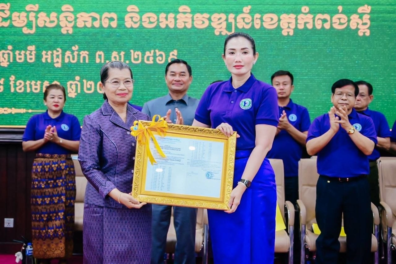 កំពង់ស្ពឺ៖ សម្តេចកិត្តិសង្គហបណ្ឌិត ម៉ែន សំអន ប្រធានសមាគមនារីកម្ពុជាដើម្បីសន្តិភាព និងអភិវឌ្ឍន៍ បានថ្លែងថា ការពង្រឹងសមត្ថភាព និងការបង្កើនចំនួនស្ត្រីក្នុងតួនាទីសម្រេចចិត្ត គឺជាកម្លាំងចលករយ៉ាងសំខាន់ក្នុងការជំរុញសមភាពយេនឌ័រ និងកាត់បន្ថយបញ្ហាអវិជ្ជមានក្នុងសង្គម។ ការលើកឡើងដូចនេះ ក្នុងពិធីប្រកាសទទួលស្គាល់ និងកែសម្រួលសមាសភាពគណៈកម្មការសាខាសមាគមនារីកម្ពុជាដើម្បីសន្តិភាព និងអភិវឌ្ឍន៍ ខេត្តកំពង់ស្ពឺ នាព្រឹកថ្ងៃទី២៨ ខែមេសា ឆ្នាំ២០២៦។