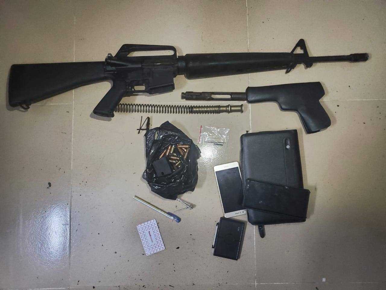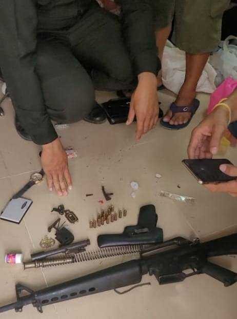 កាំភ្លើងវែងម៉ាក M16 ចំនួន ១ដើម, គ្រាប់កាំភ្លើងចម្រុះចំនួន ១៦គ្រាប់, ស្រោមអាវុធខ្លី ម៉ាកK54 ចំនួន ១ និងសម្ភារផ្ទាល់ខ្លួនជនល្មើសជាច្រើនទៀត៕
