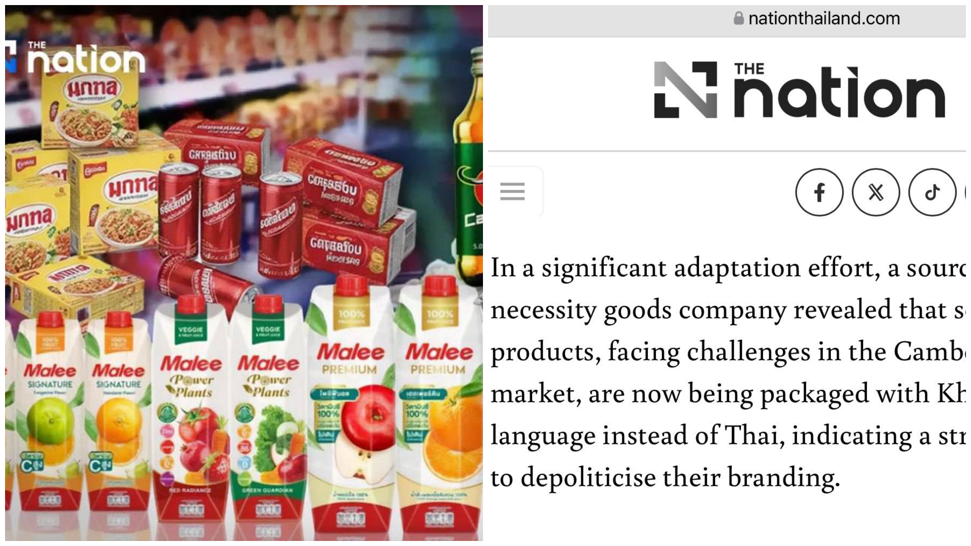 ក្រុមហ៊ុនថៃមួយចំនួន ចាប់ផ្តើមប្រើប្រាស់អក្សរខ្មែរដាក់នៅលើផលិតផលរបស់ខ្លួន ជំនួសឱ្យអក្សរថៃ